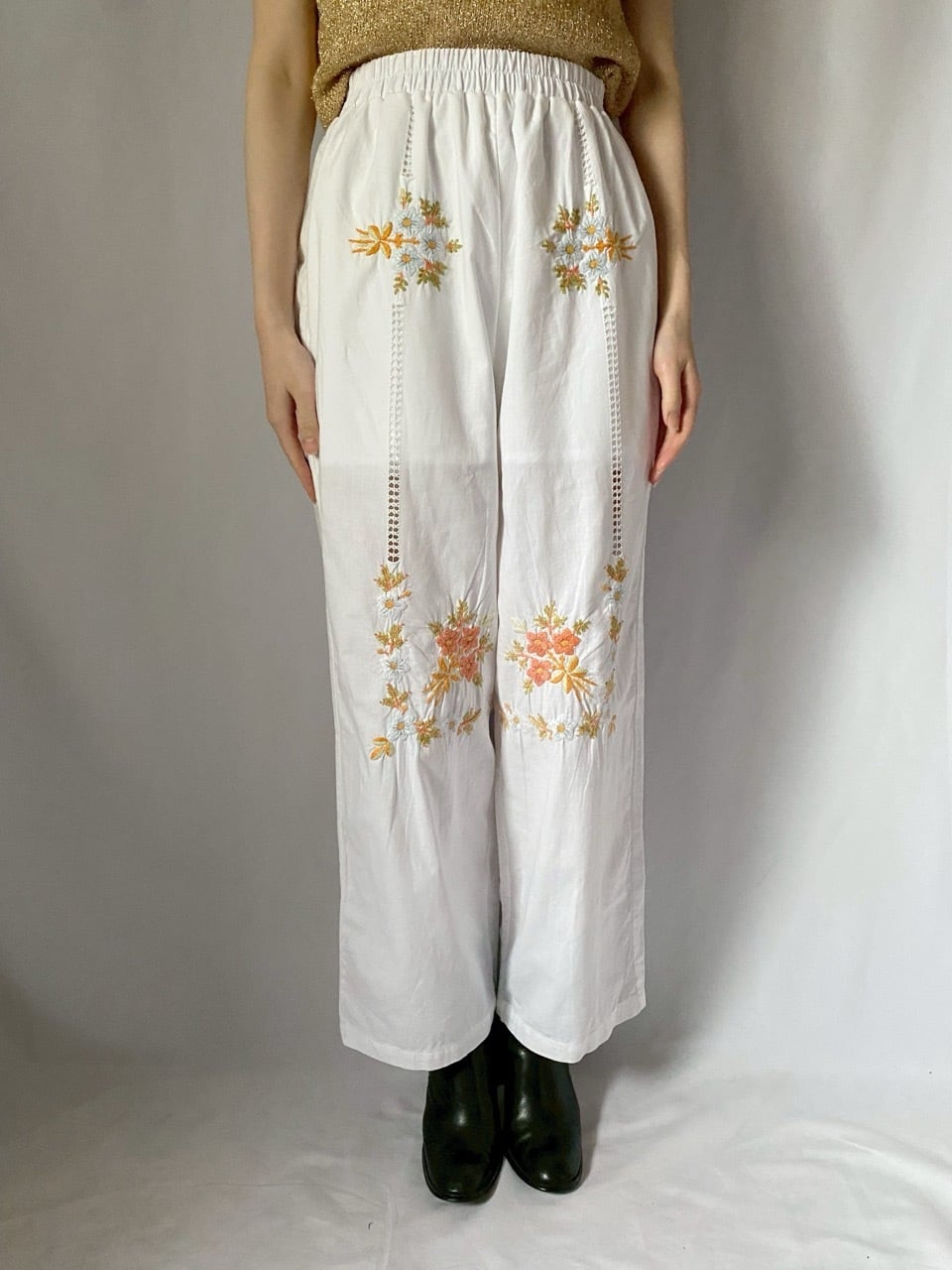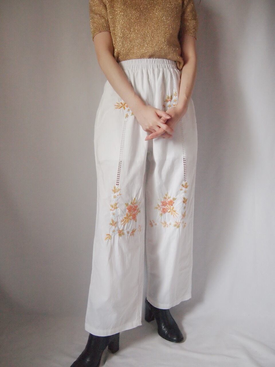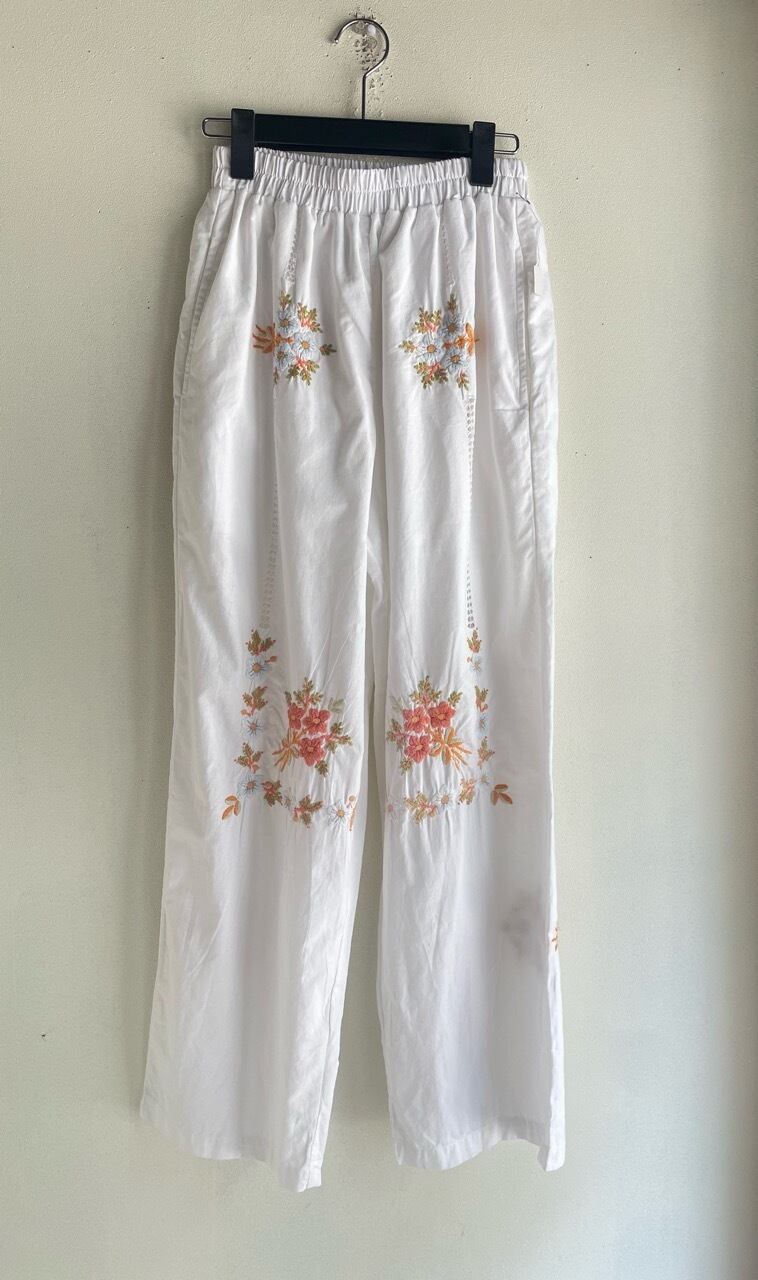 ホワイト花刺繍パンツ