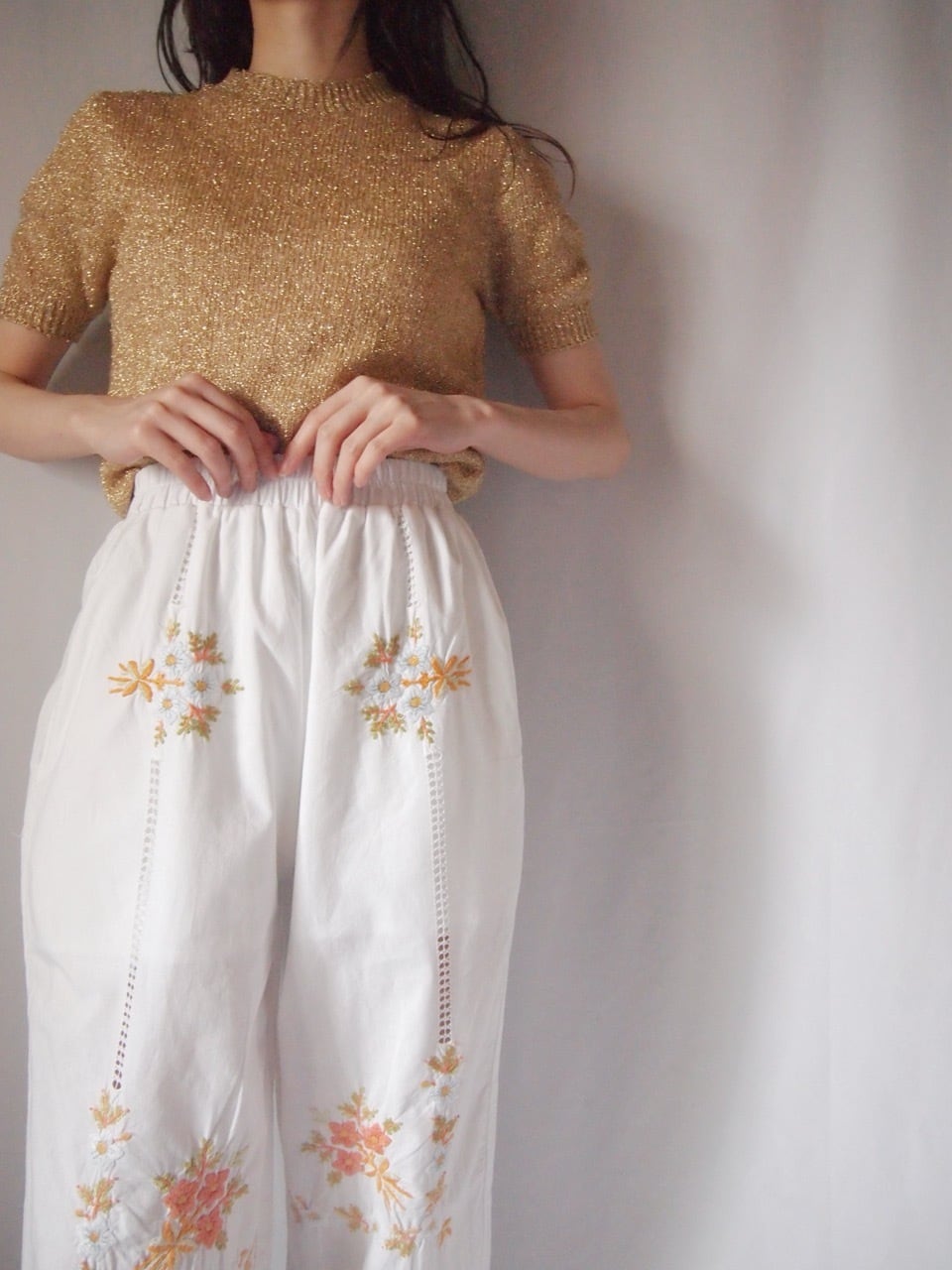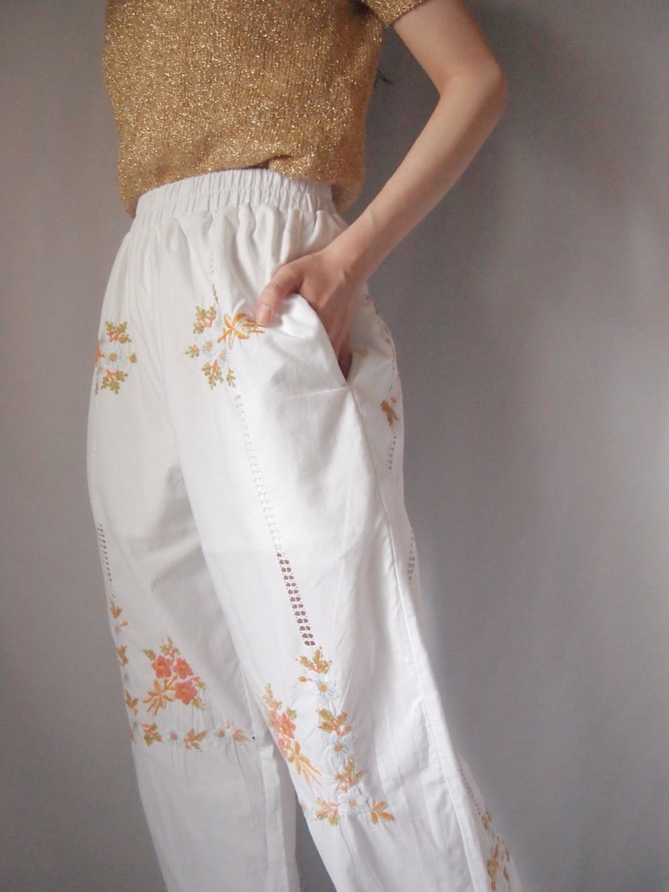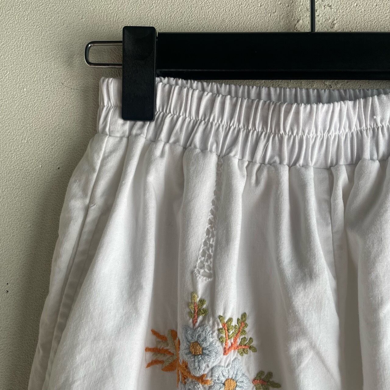 ホワイト花刺繍パンツ