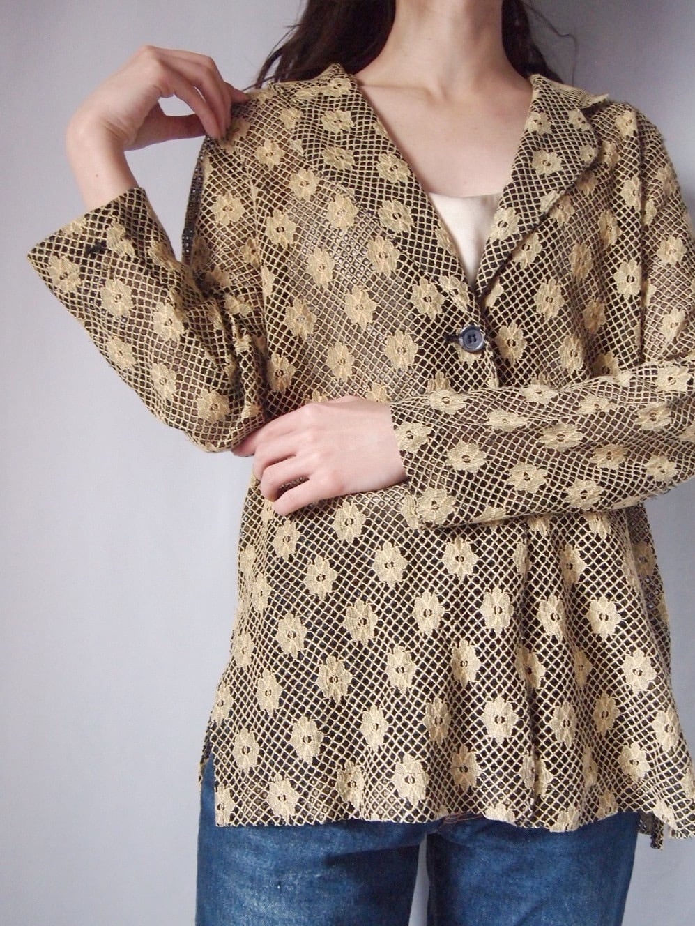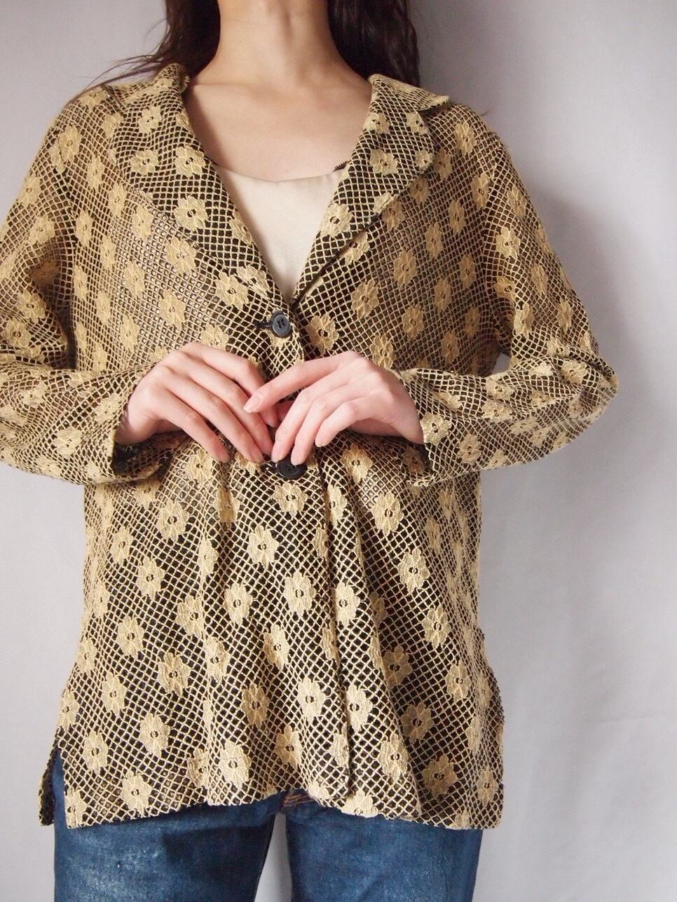 ブラック×ライトブラウンレースジャケット