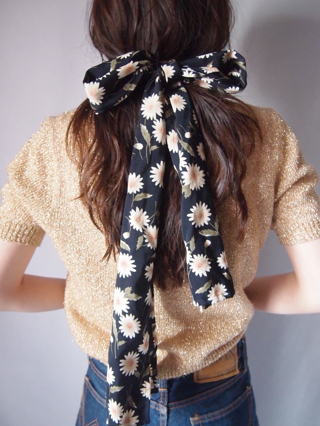 ブラック×デイジーロングスカーフ