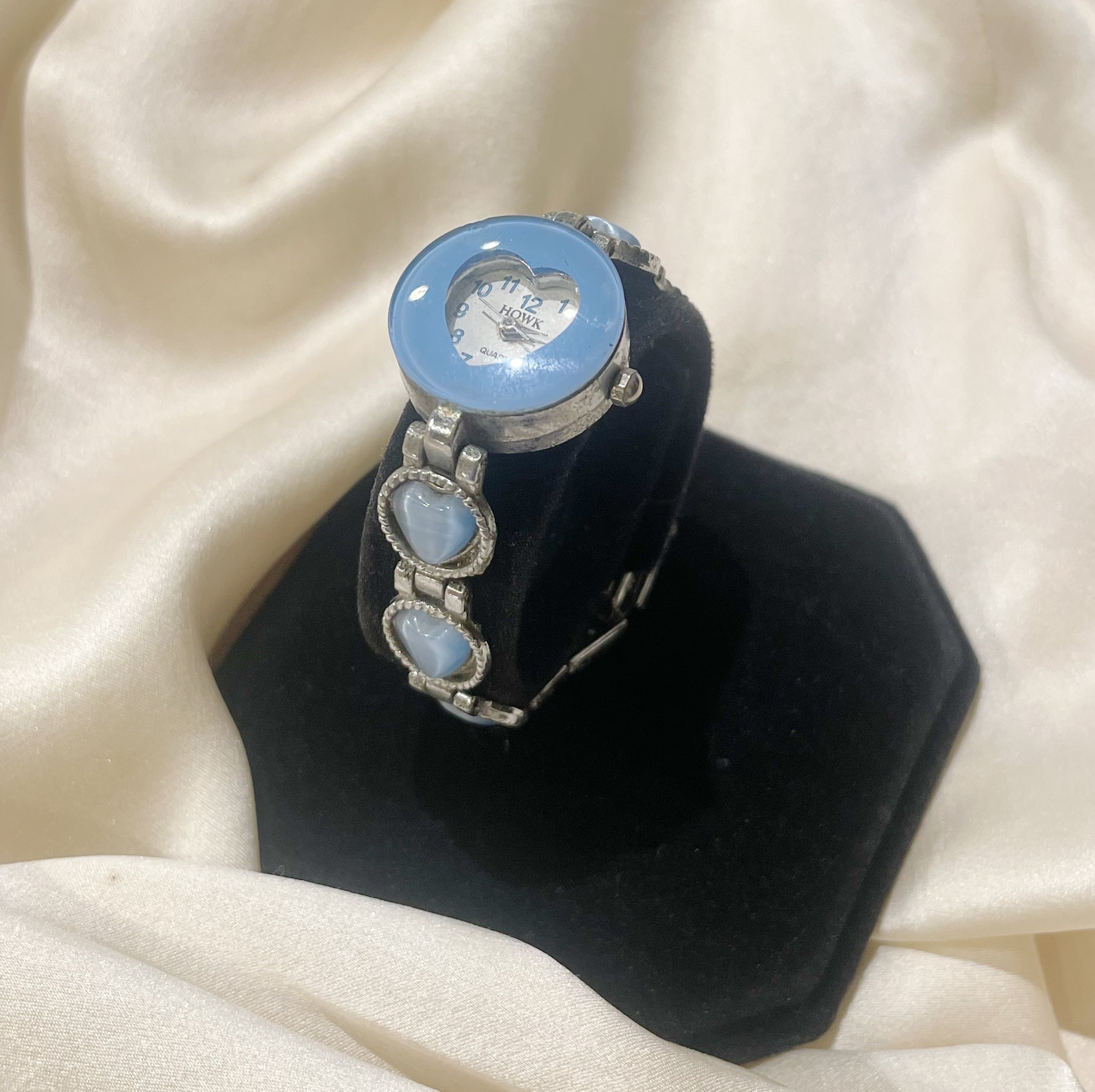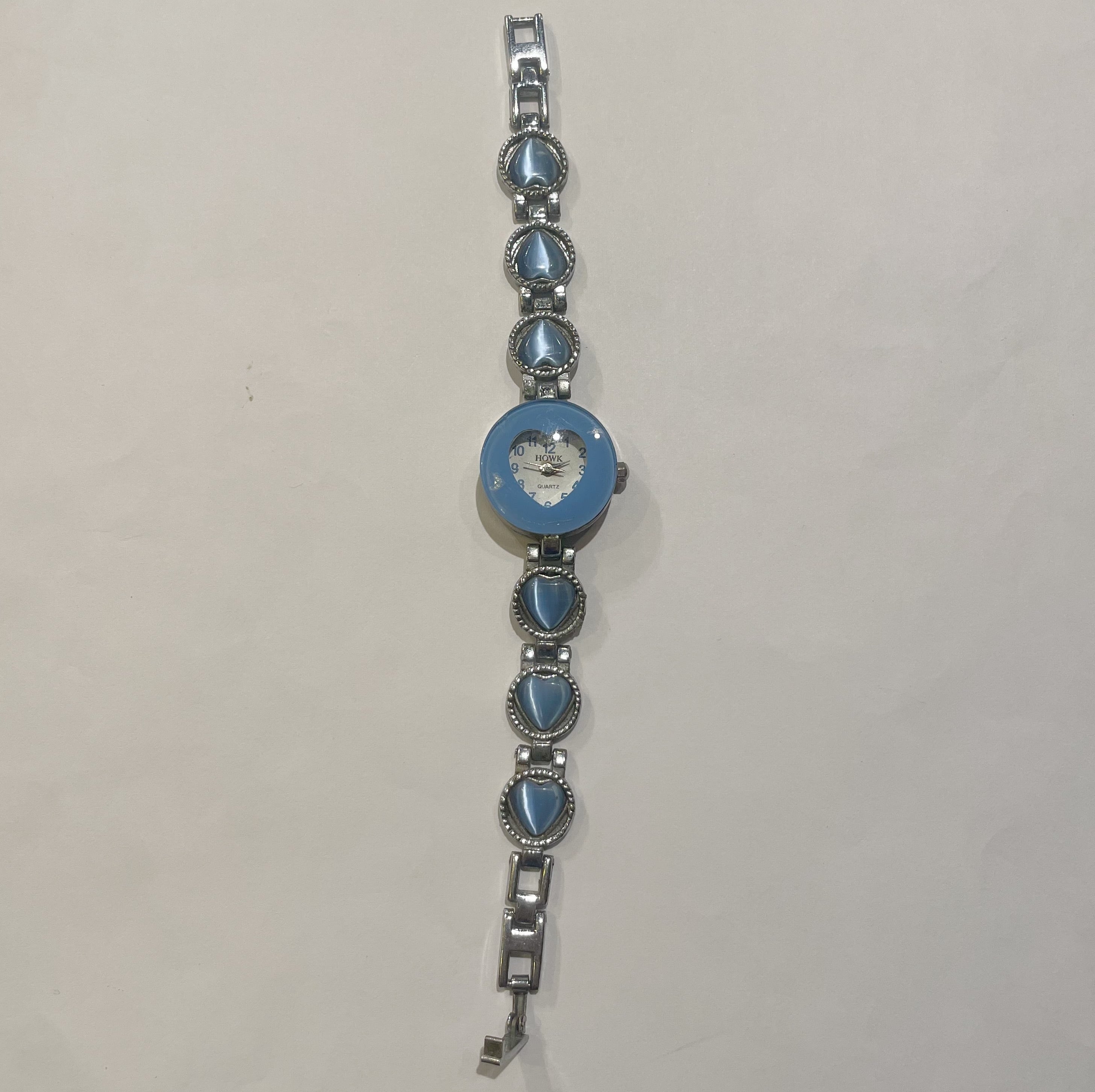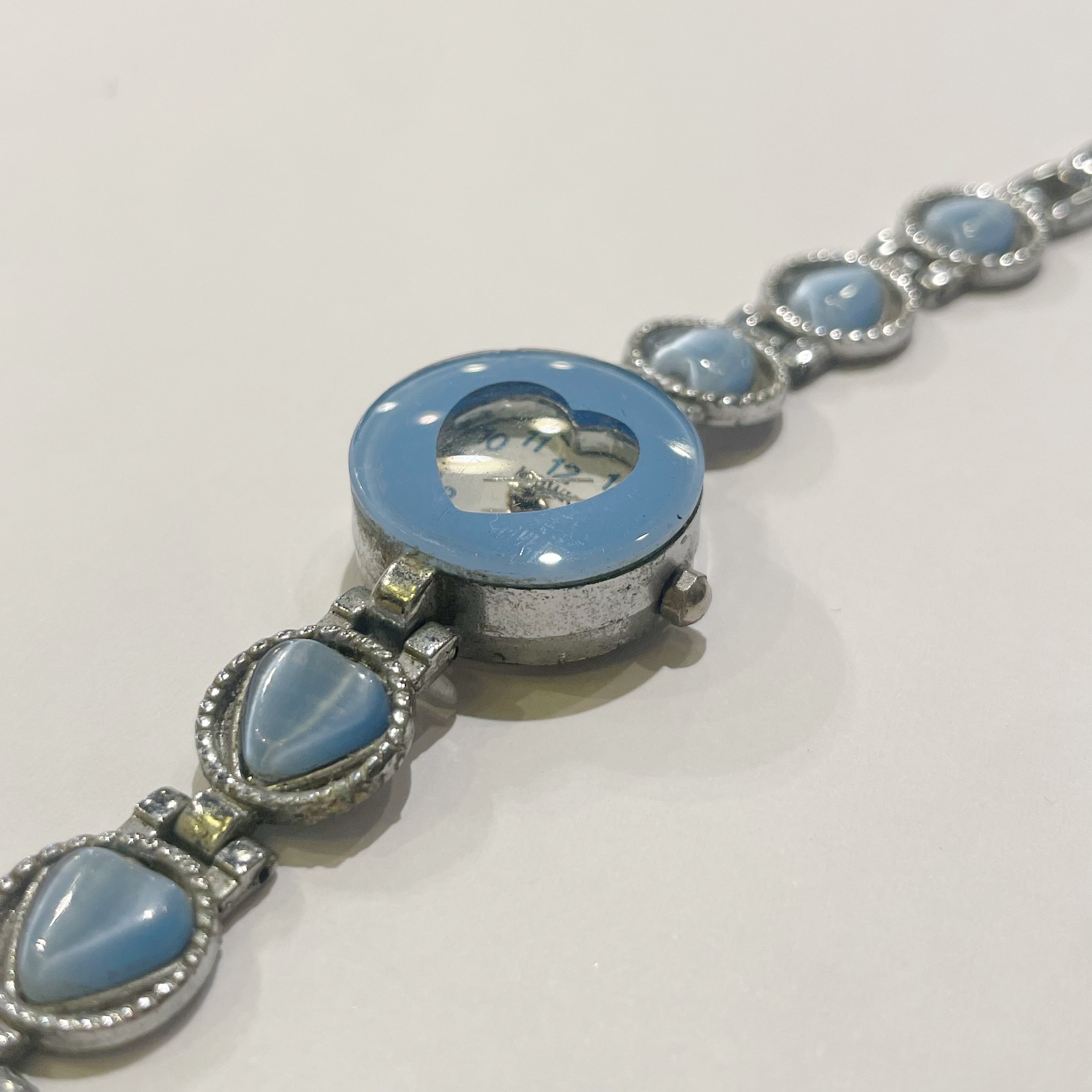 ブルー×シルバーハート時計