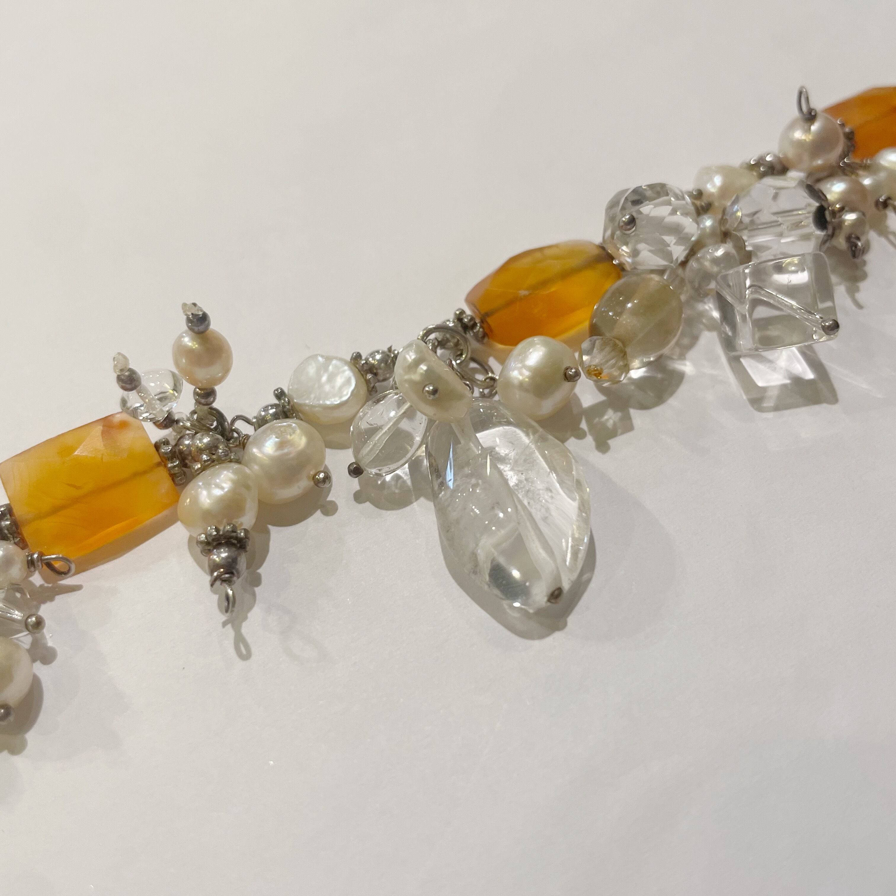 オレンジ×クリア×パールブレスレット