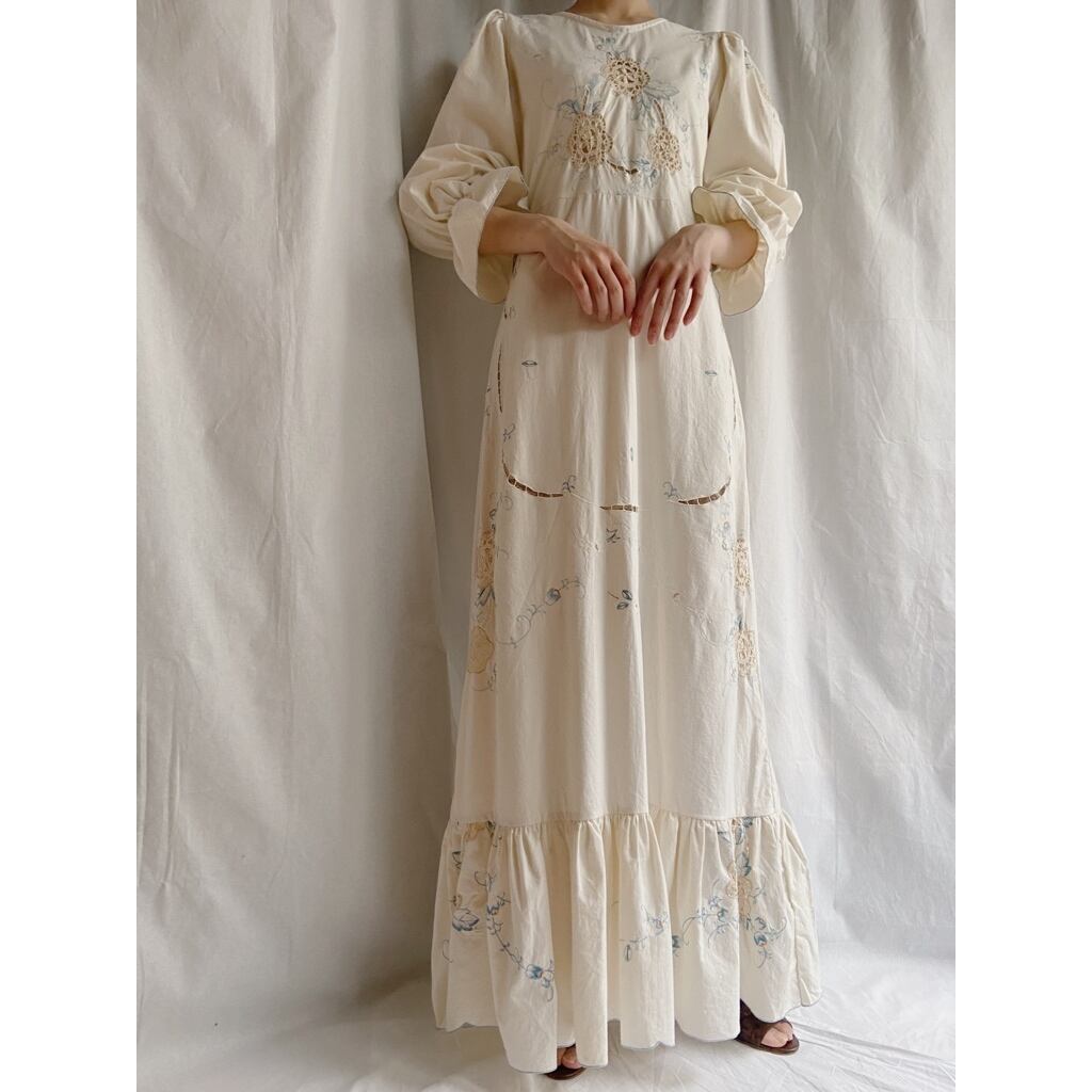 花刺繍コットンドレス