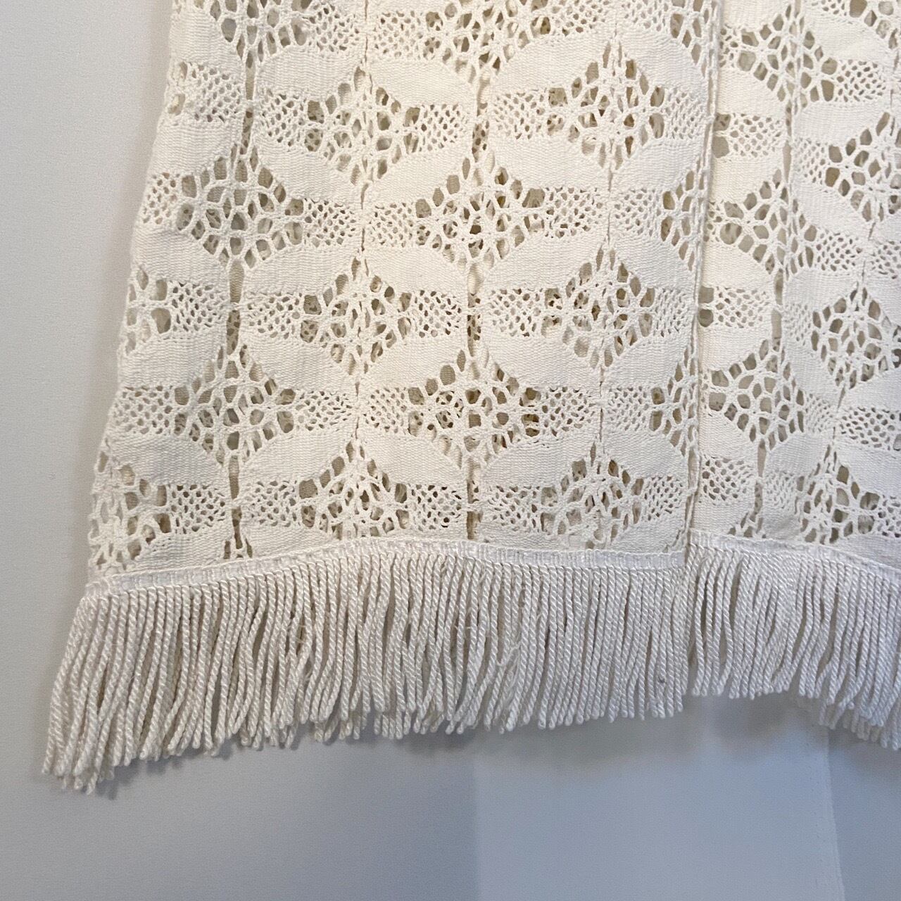 ホワイトかぎ編みフリンジワンピース