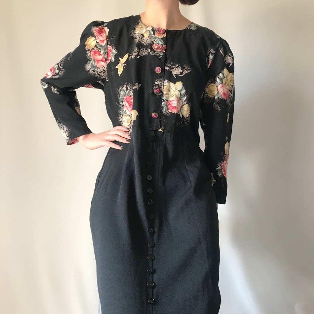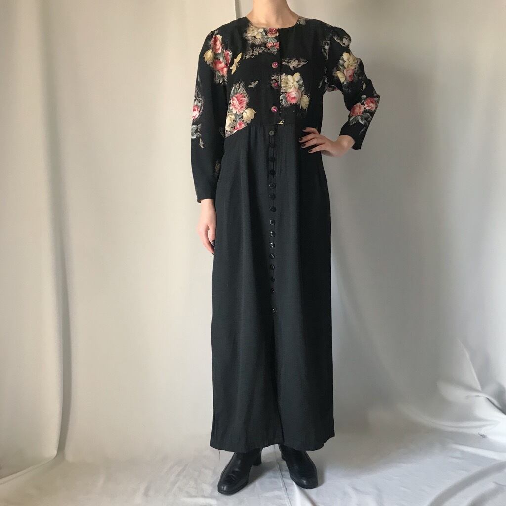 花柄切り替えビジューボタンワンピース◎
