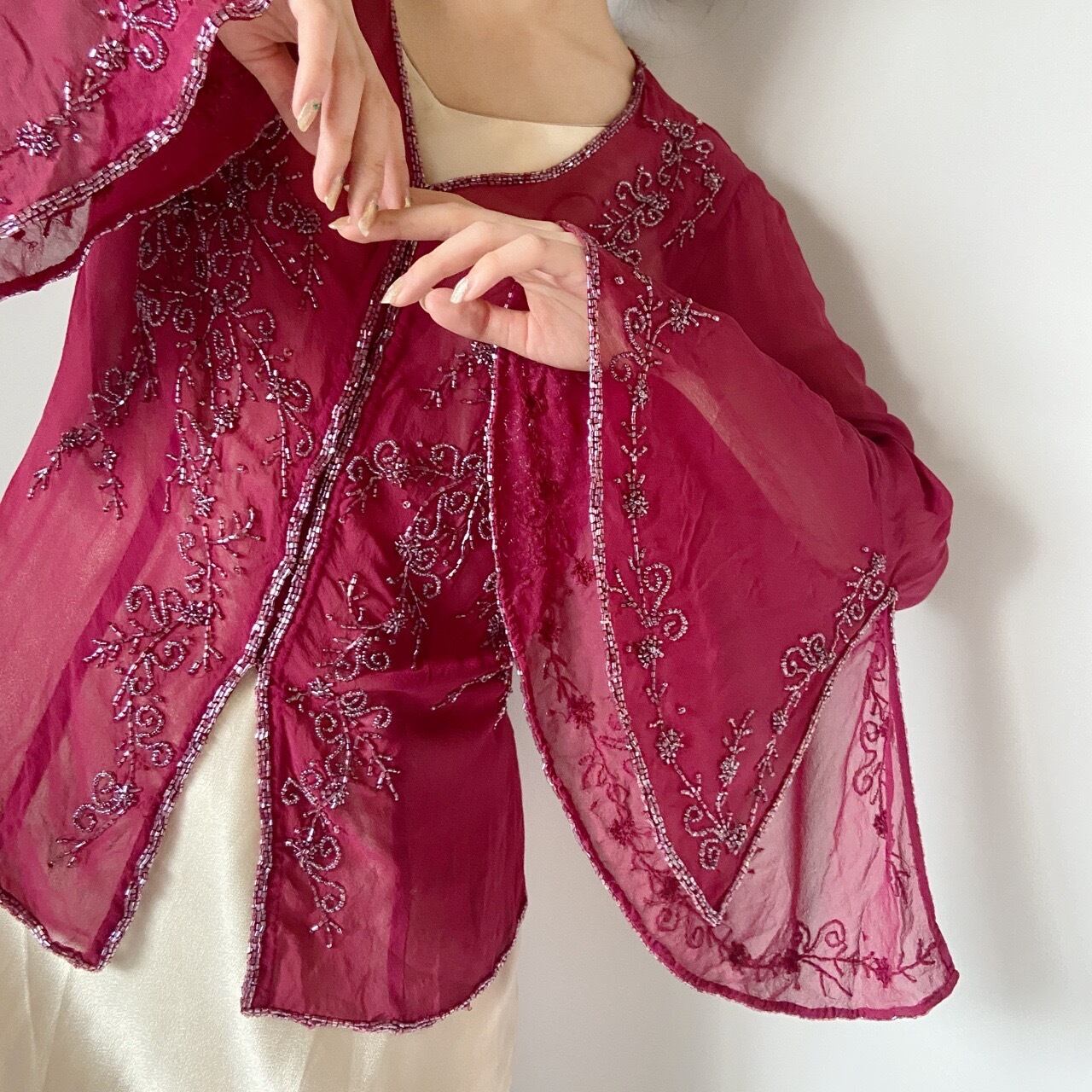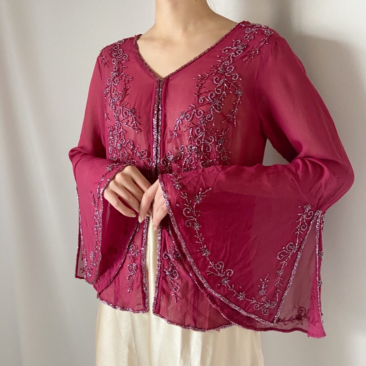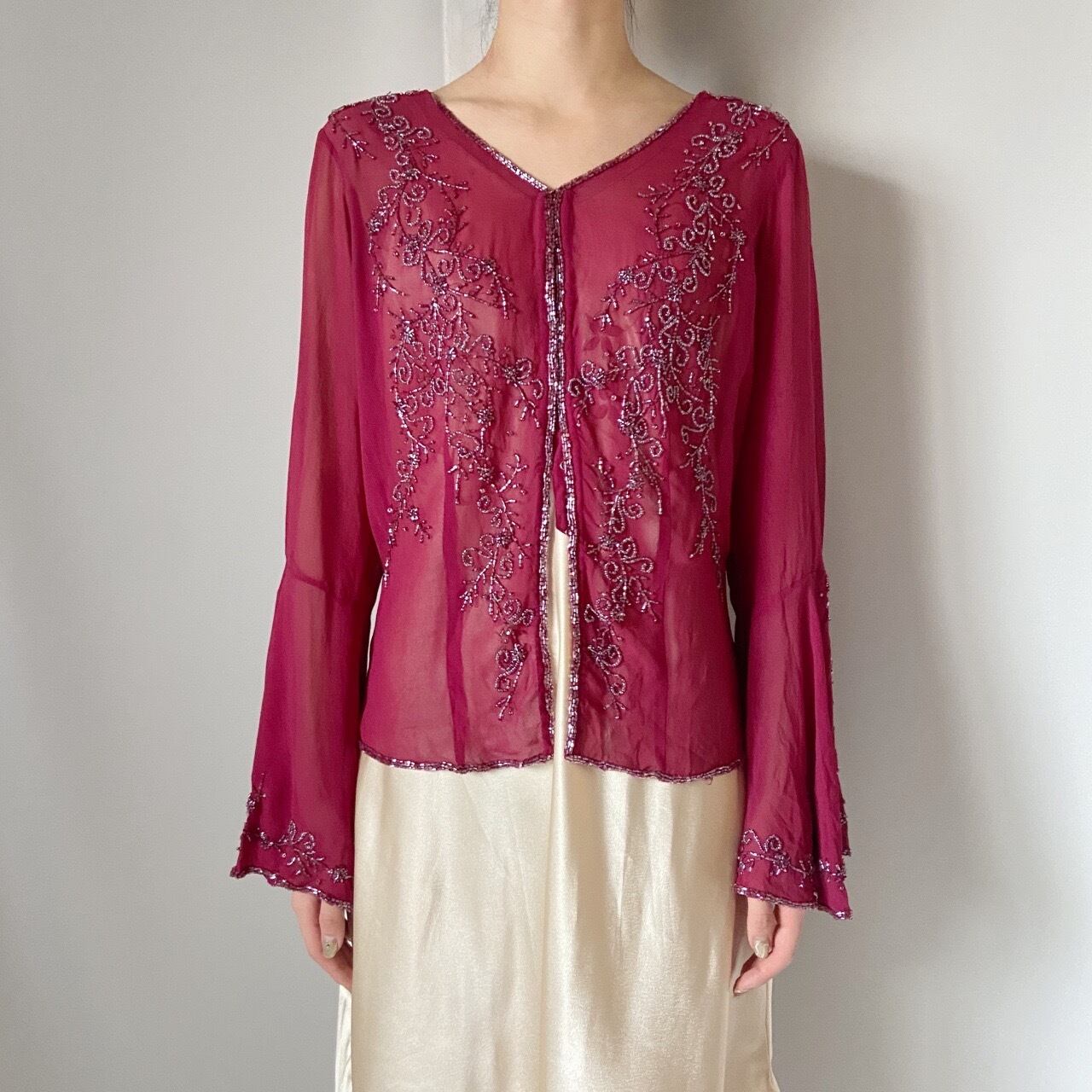 ビーズ刺繍に所々ダメージがございます。(写真12~14)