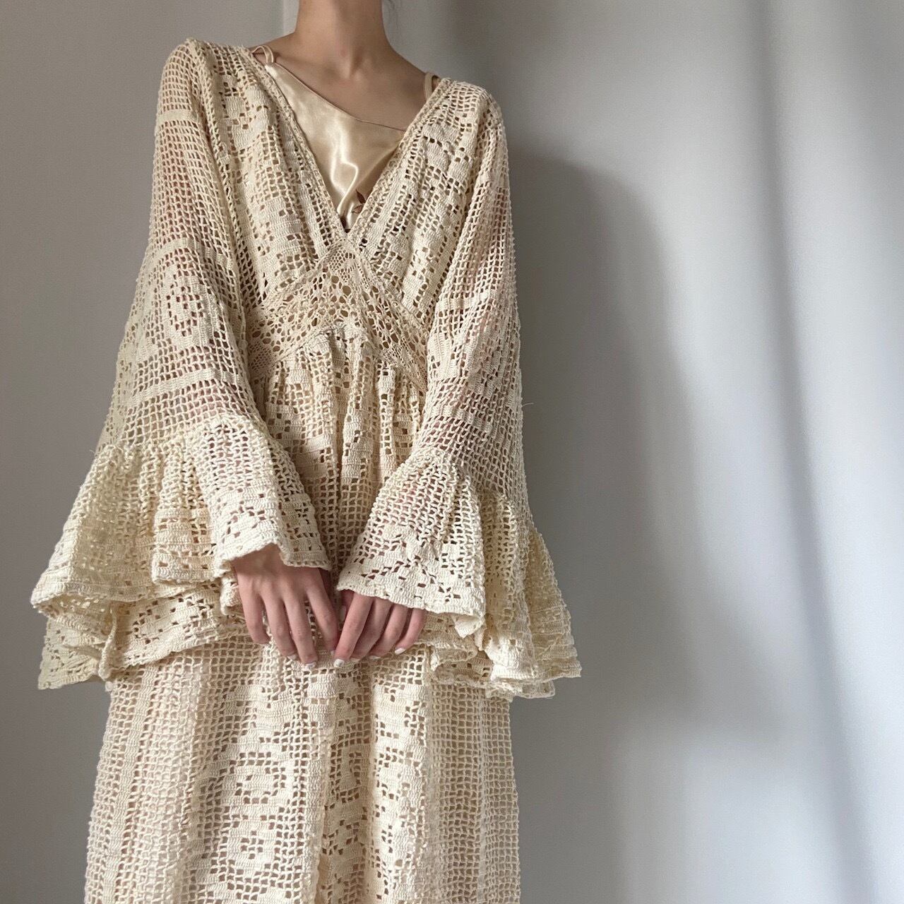 かぎ編みフレアスリーブワンピース◎