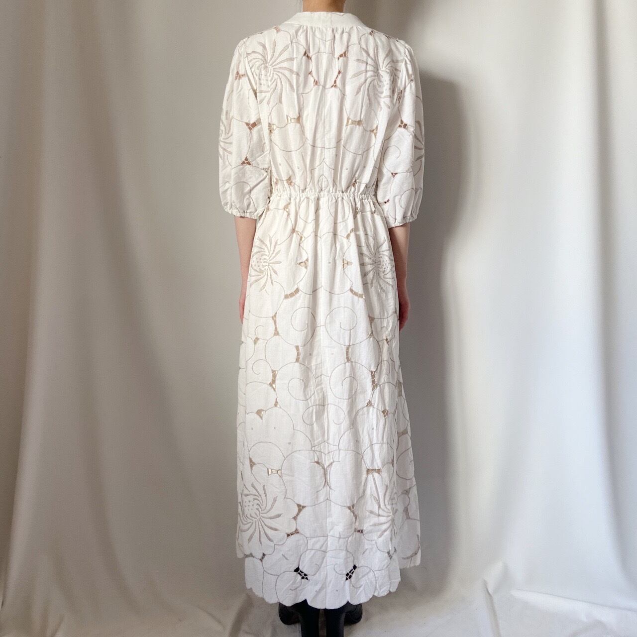 ホワイト刺繍ワンピース