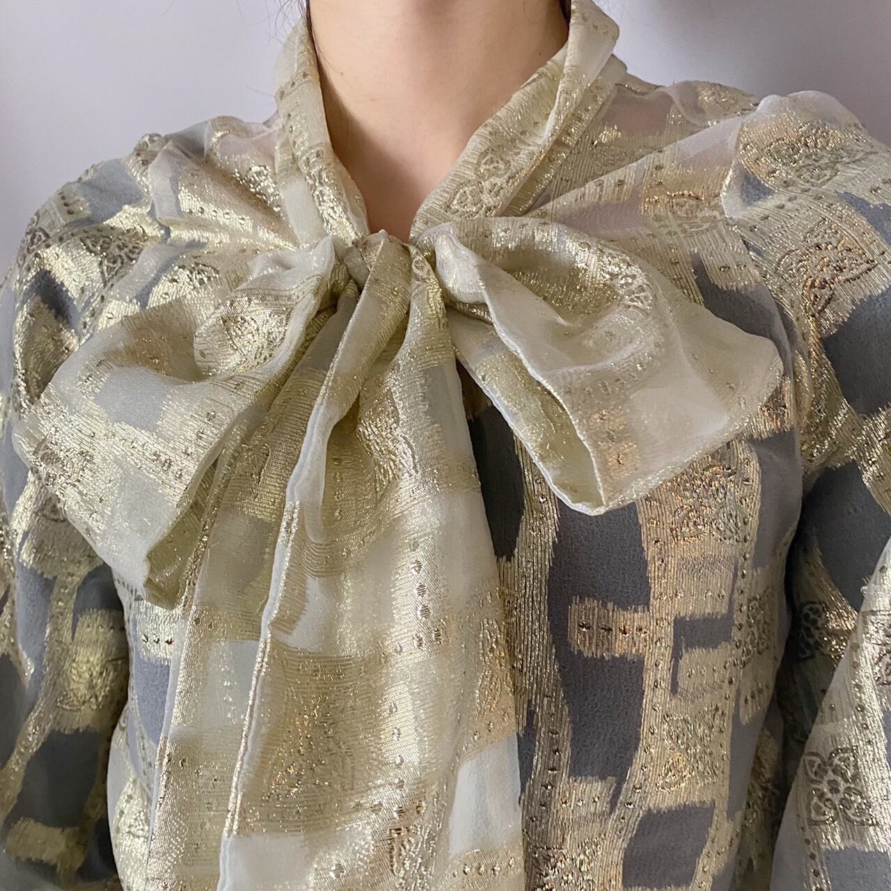 ゴールドラメボウタイブラウス
