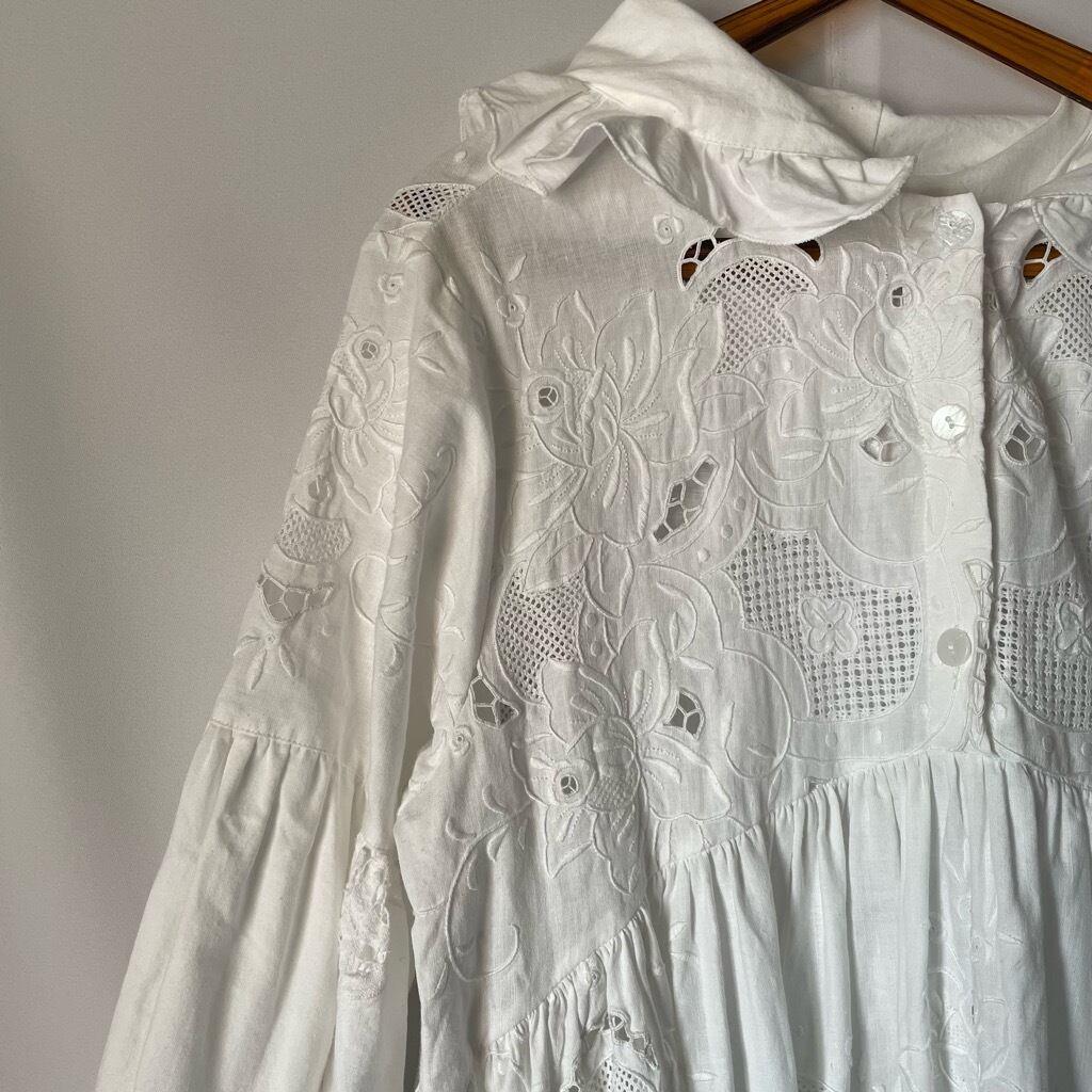 ホワイト刺繍フードワンピース