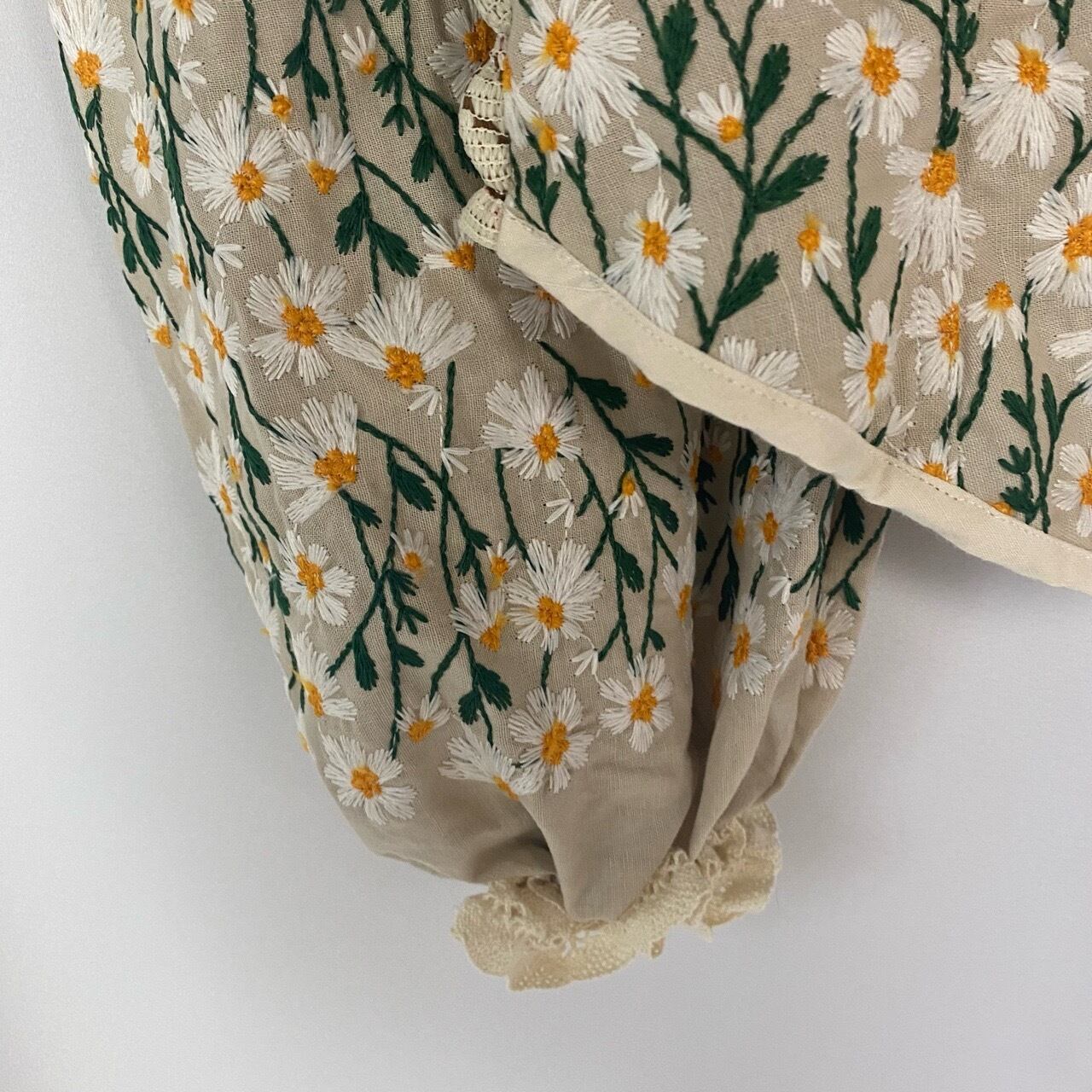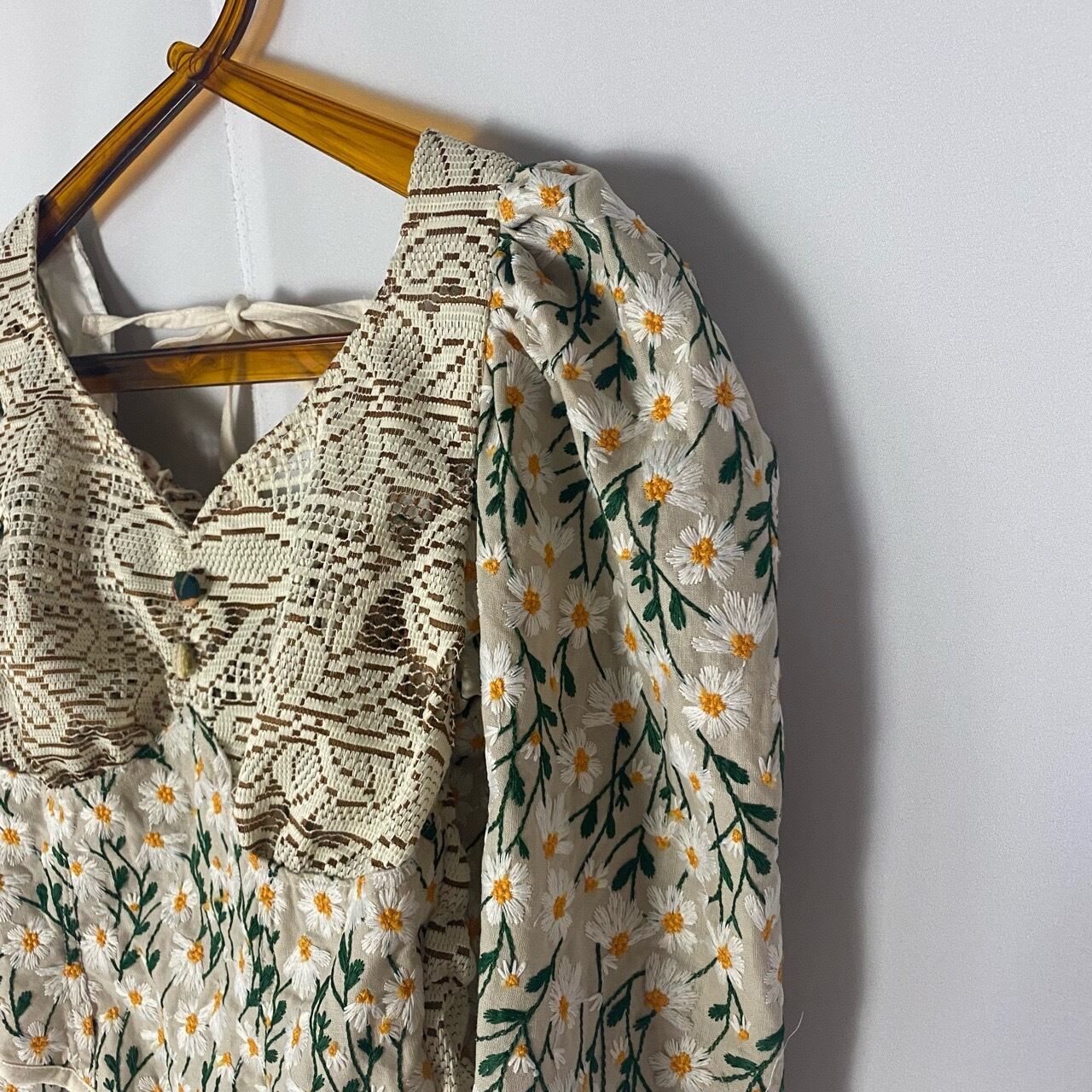 ブラウンレース×花刺繍ショート丈トップス