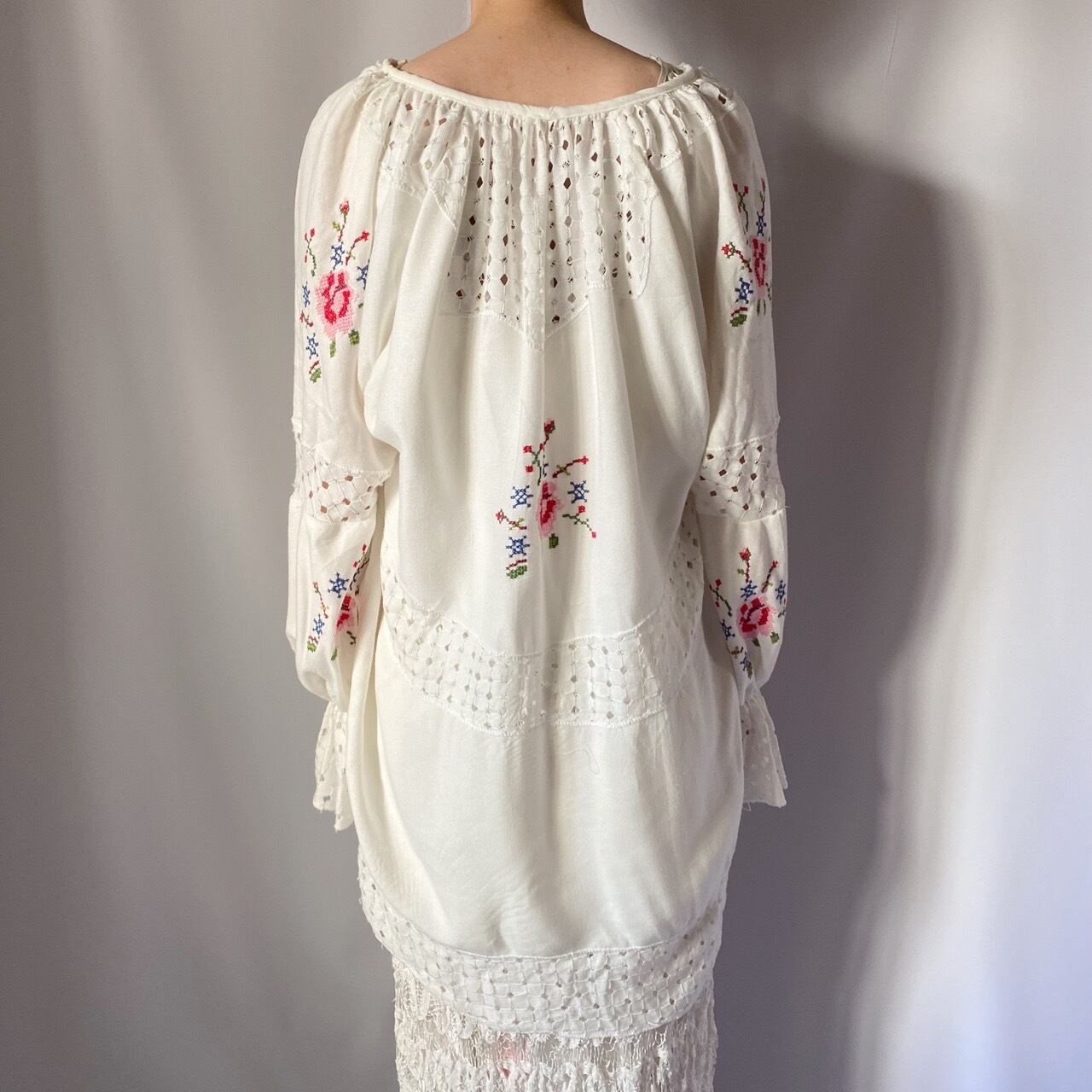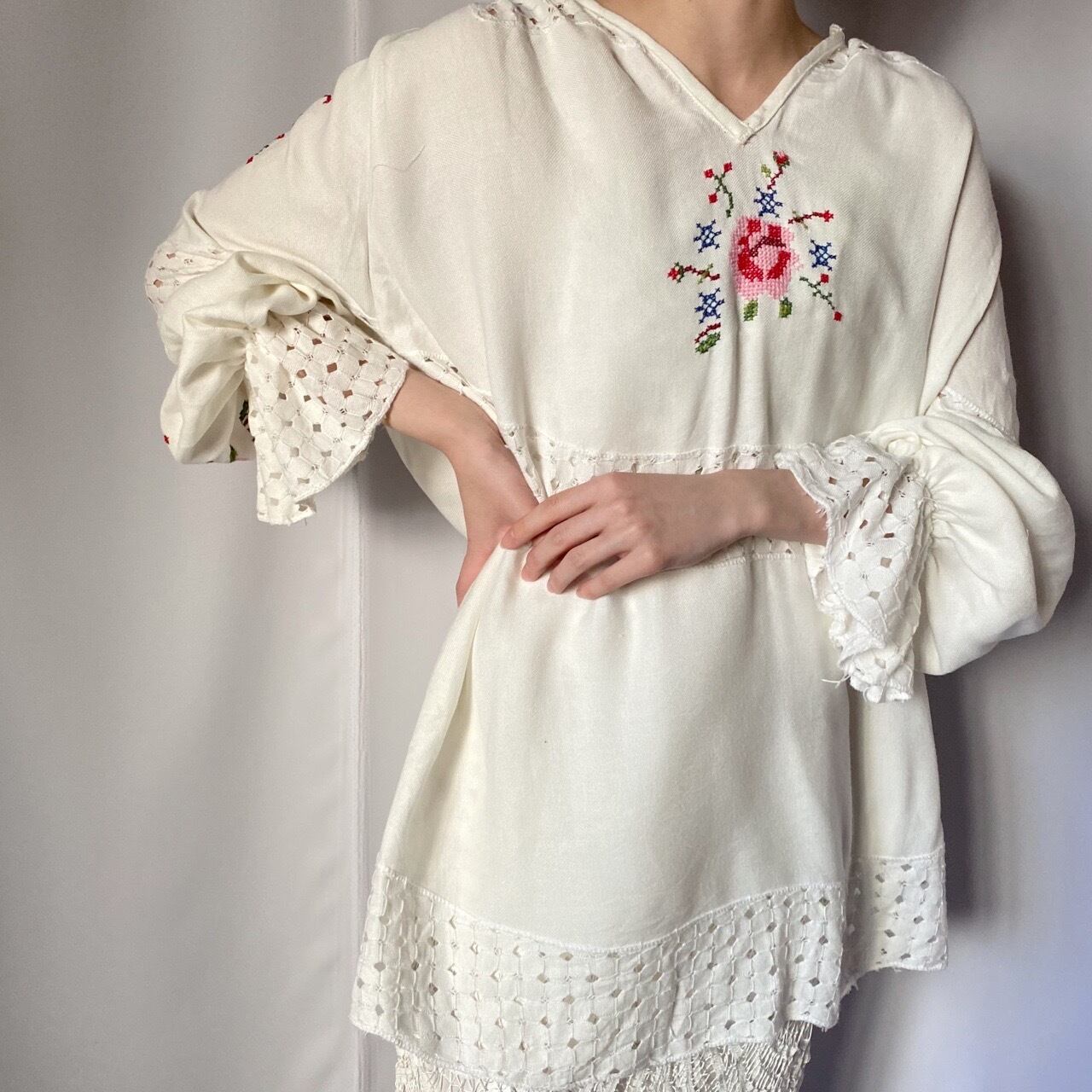 ホワイトお花刺繍チュニック
