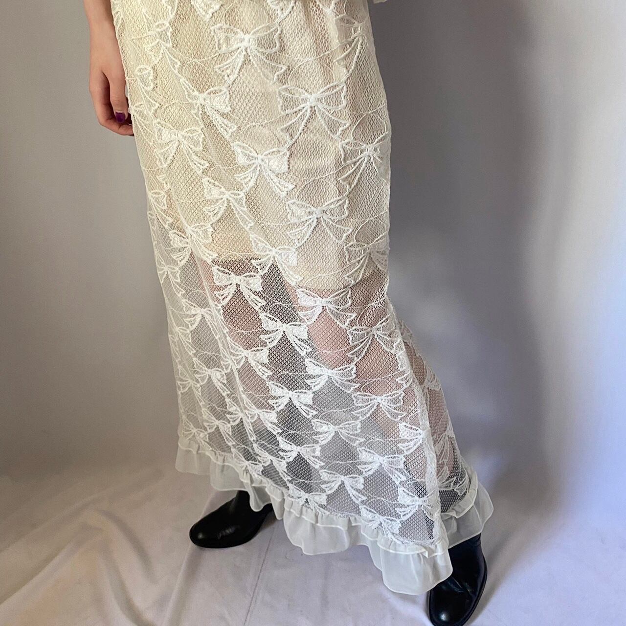 リボン柄ホワイトレーススカート