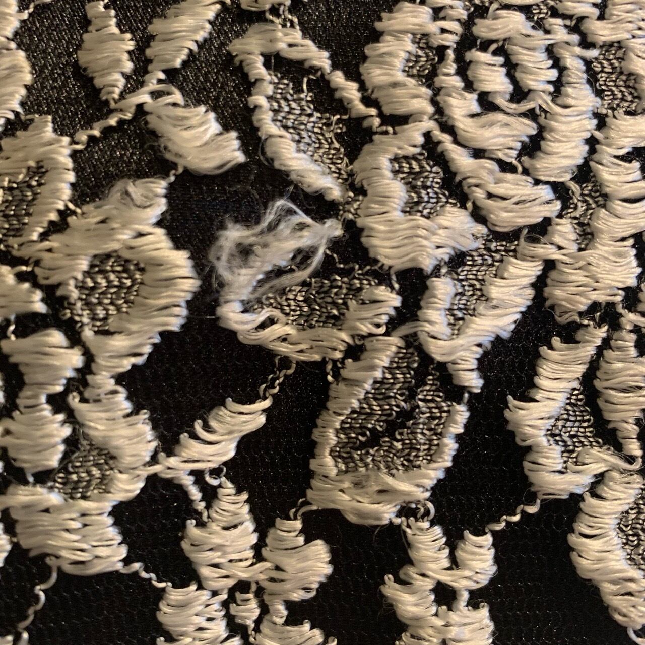 お洋服の刺繍部分全体に毛羽立ちのようなダメージがございます。(写真18〜20)