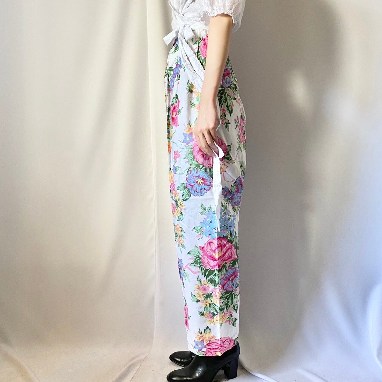 ホワイト花柄パンツ