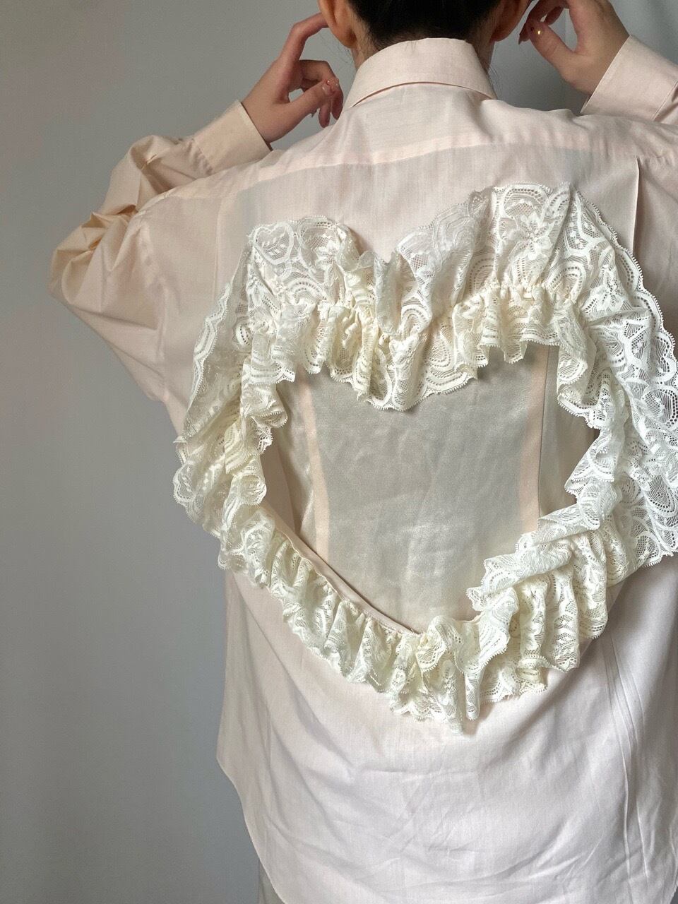 ベビーピンクハートレースシャツ