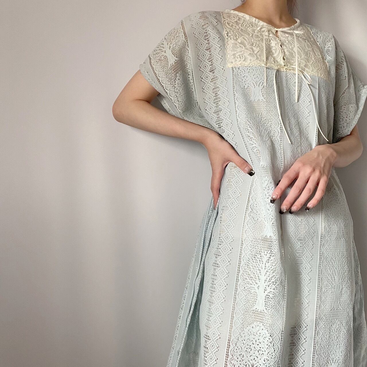 ライトブルーレースワンピース