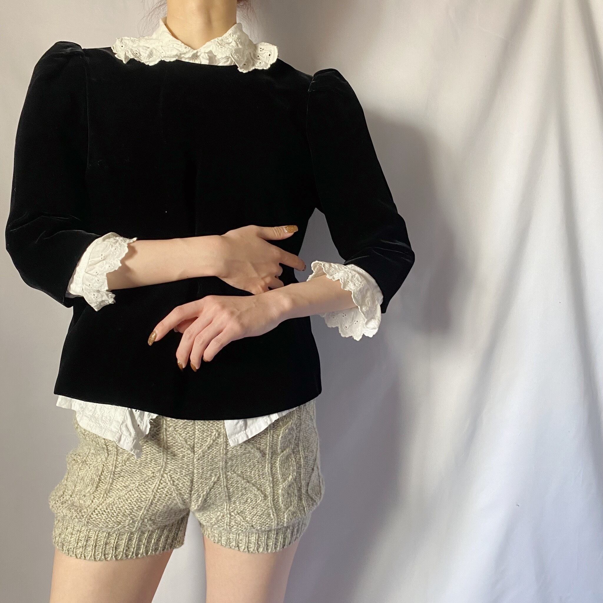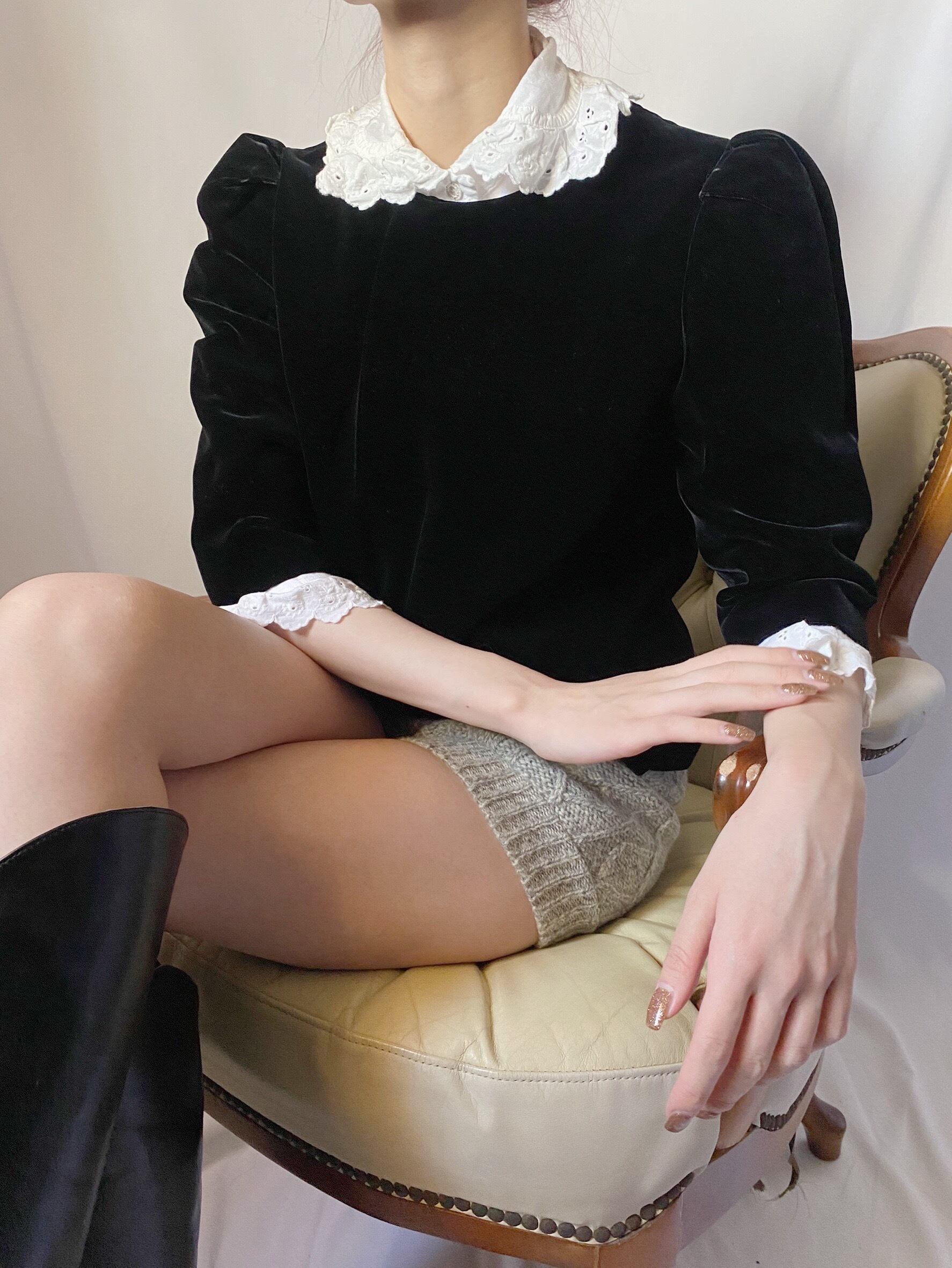 ベロア七分丈トップス