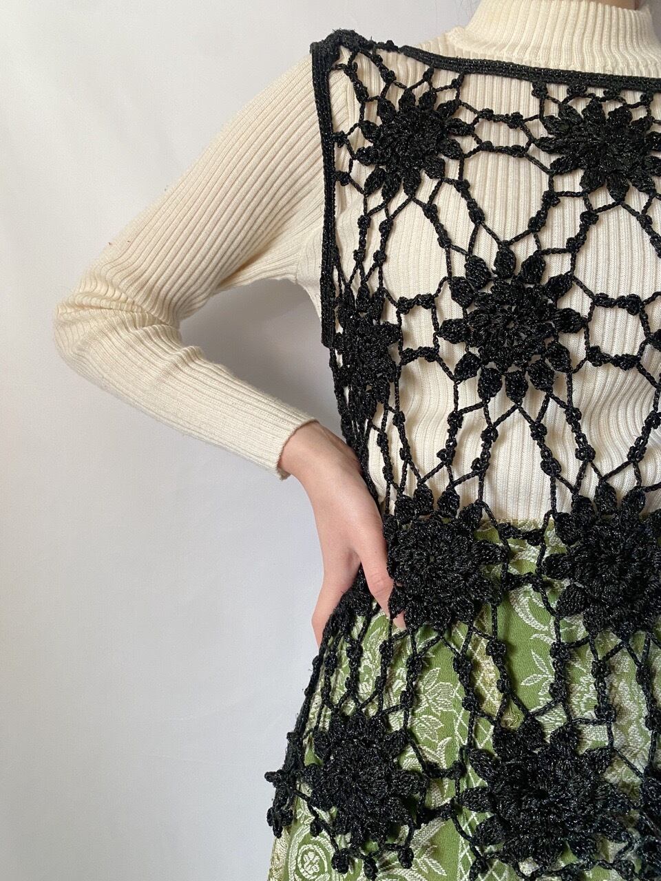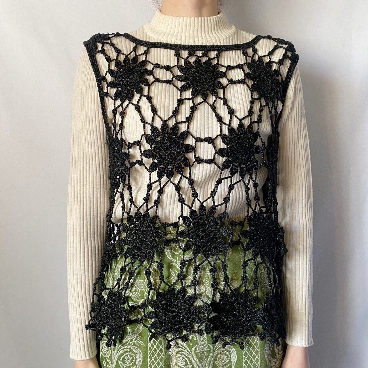 ブラックラメ鍵あみトップス