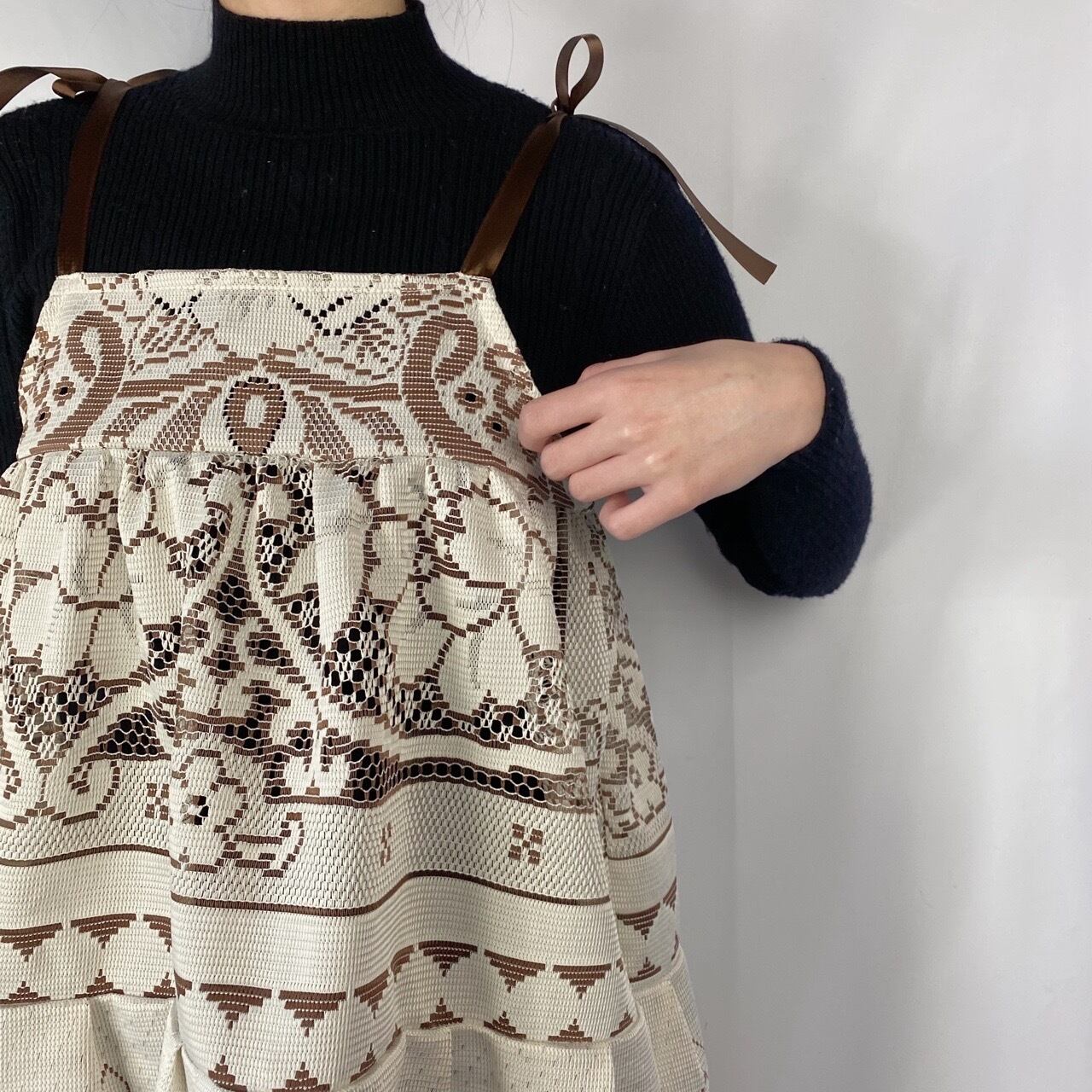 ブラウンレースキャミワンピース