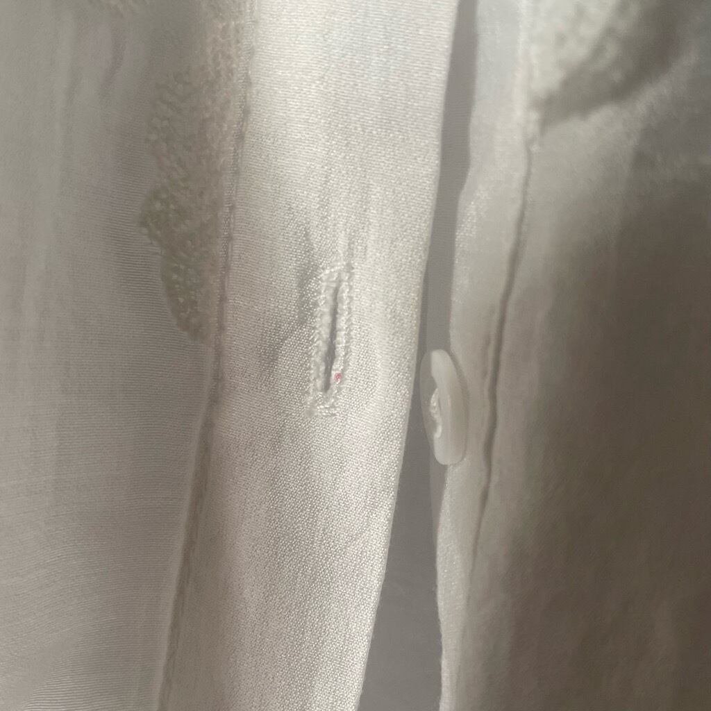 第5ボタンホールに汚れがございます。(写真18)