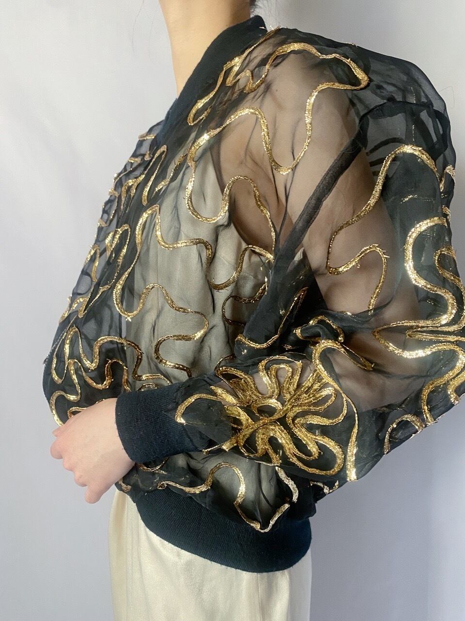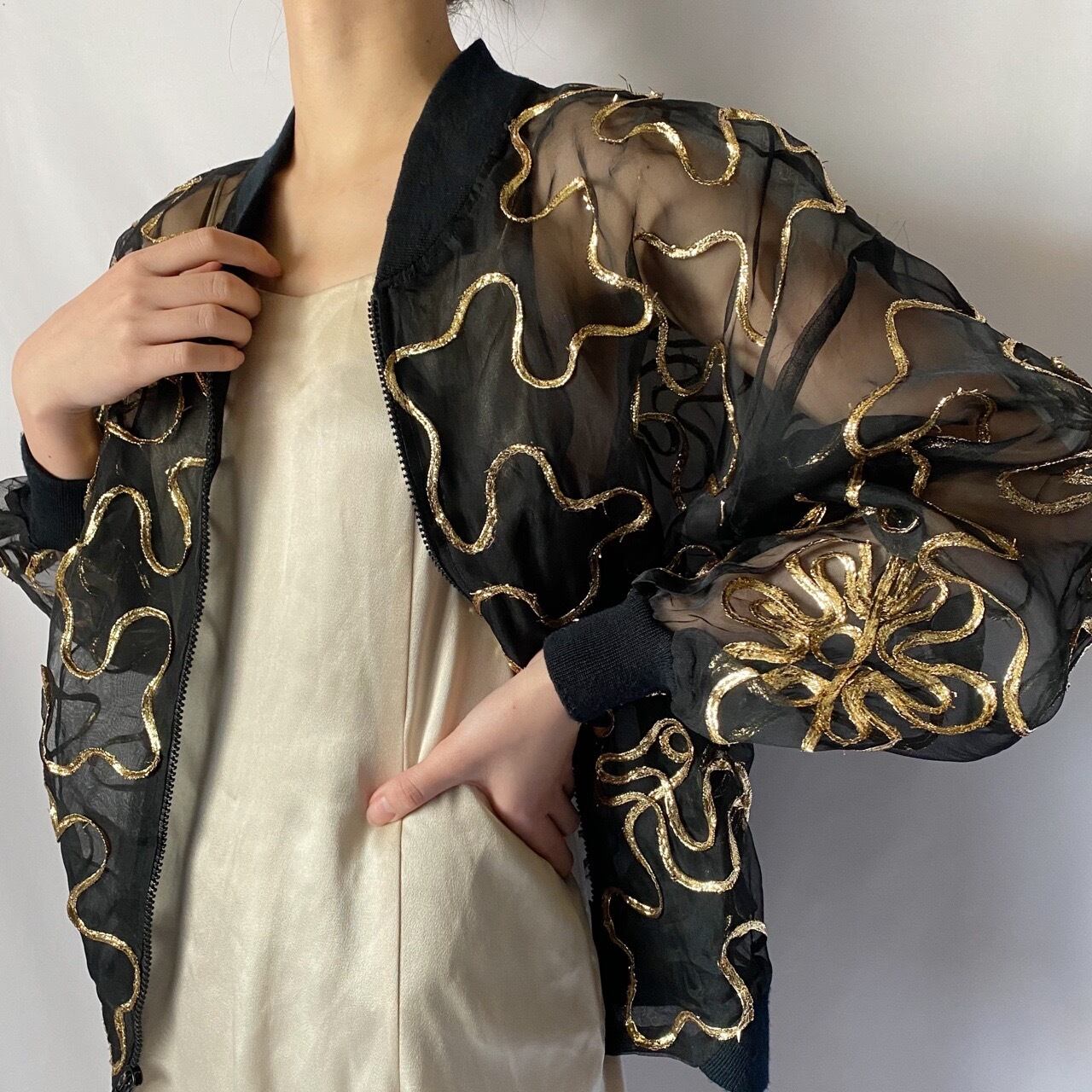 コード刺繍シースルーブルゾン