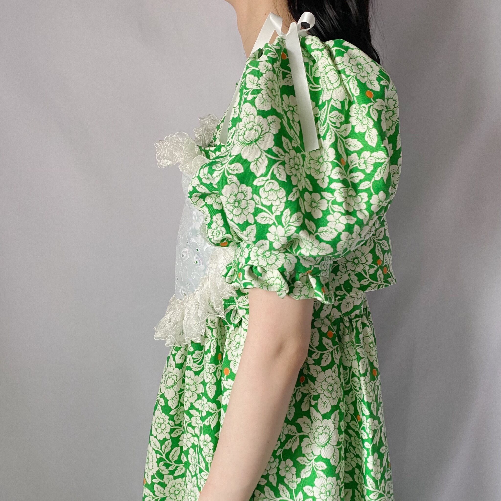 グリーン×ホワイトハートビスチェ