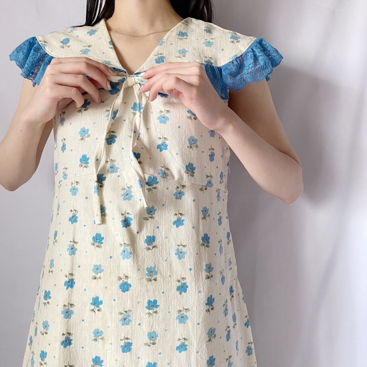 ブルー花柄ワンピース