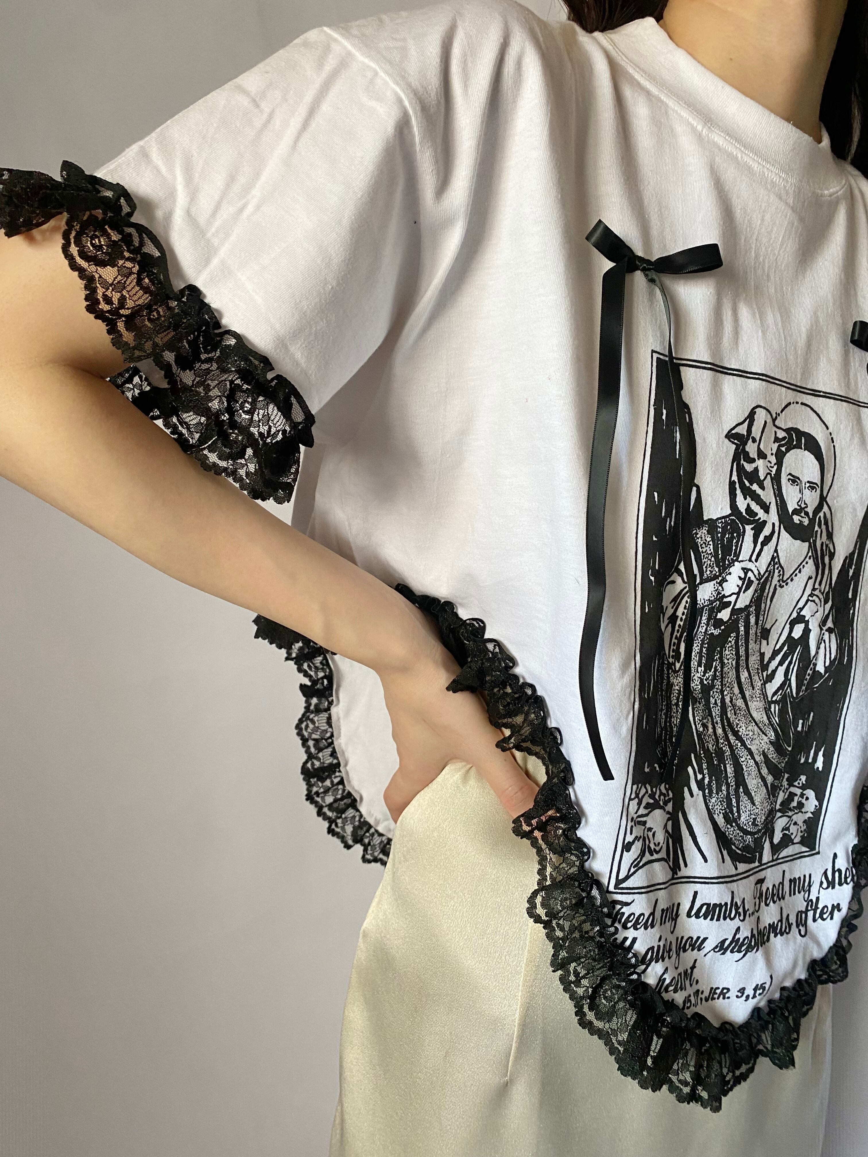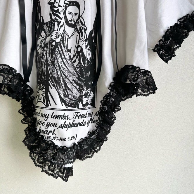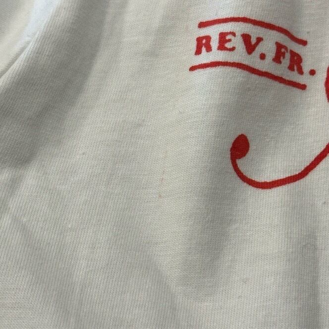 首元、前右上辺り、後ろプリント付近に写真のような赤い汚れがございます。(写真15〜19)