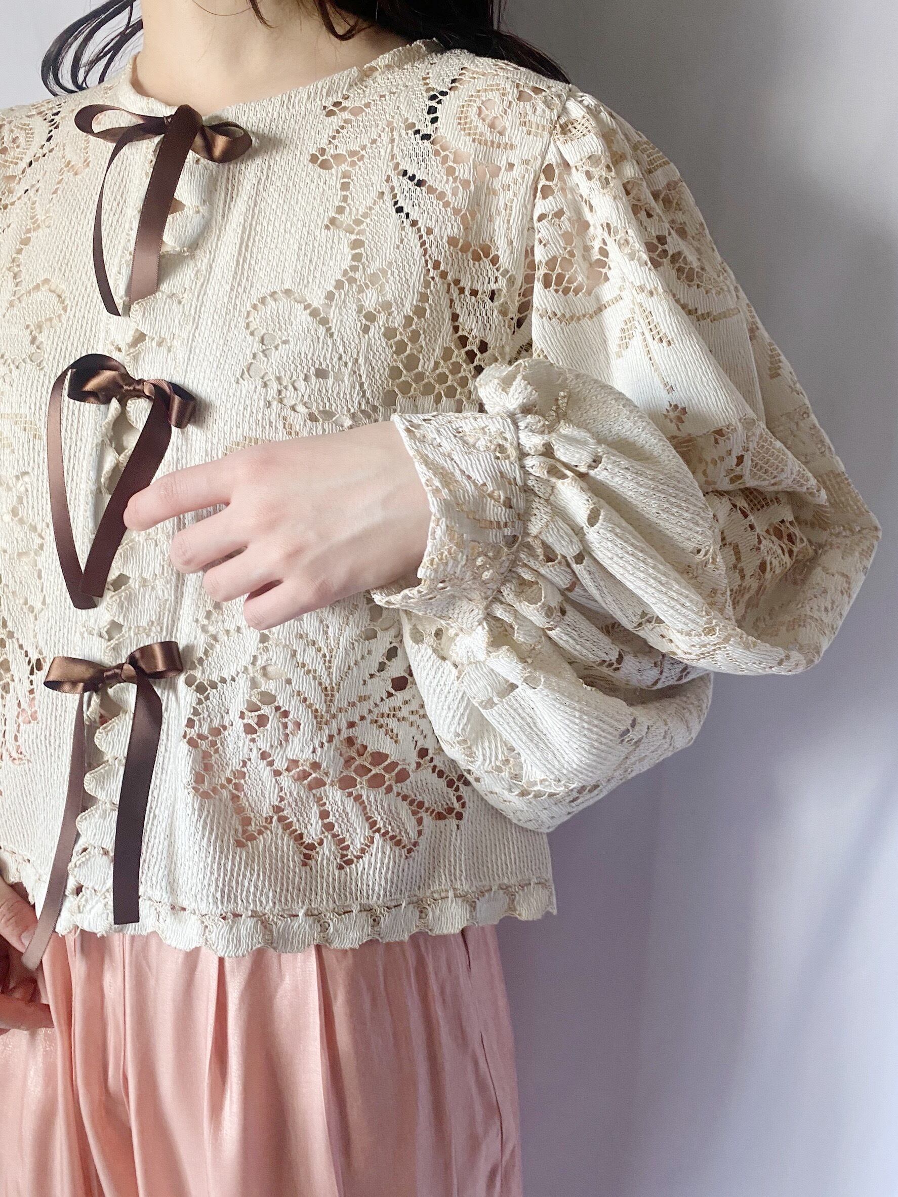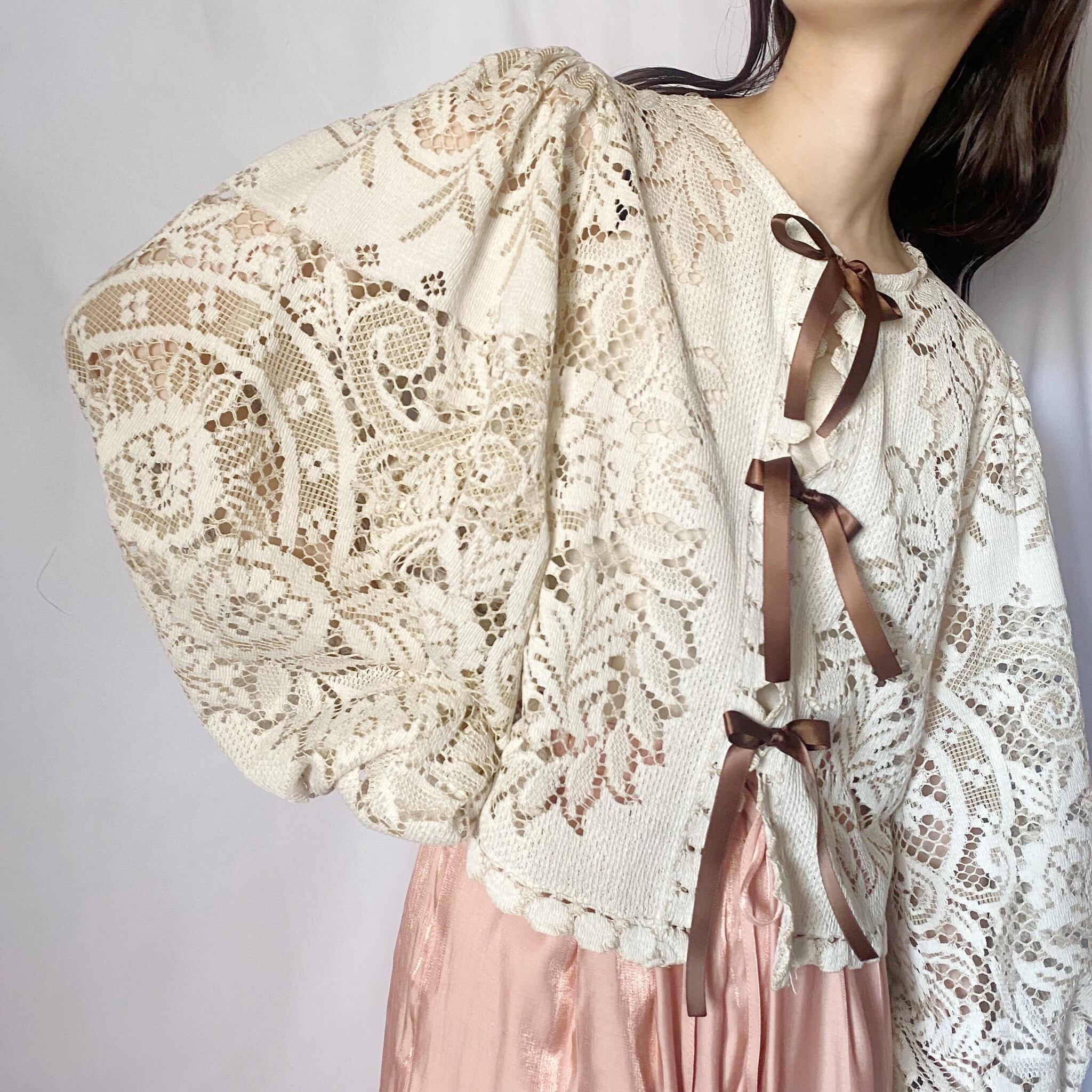ベージュ×ブラウン レースジャケット
