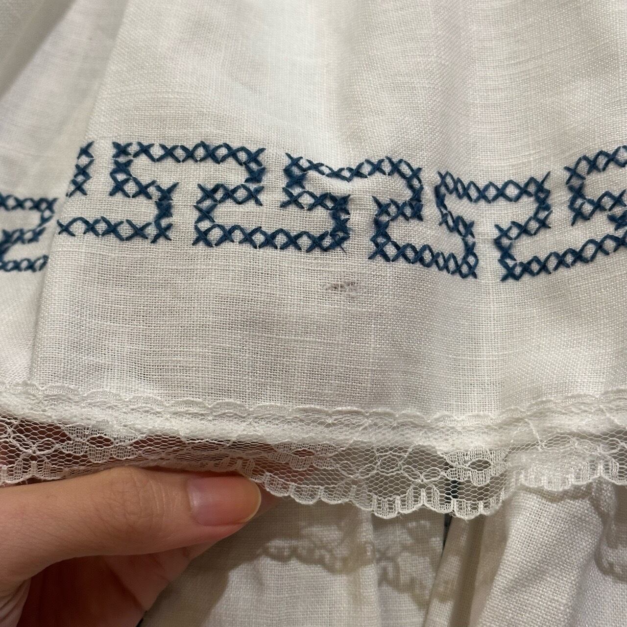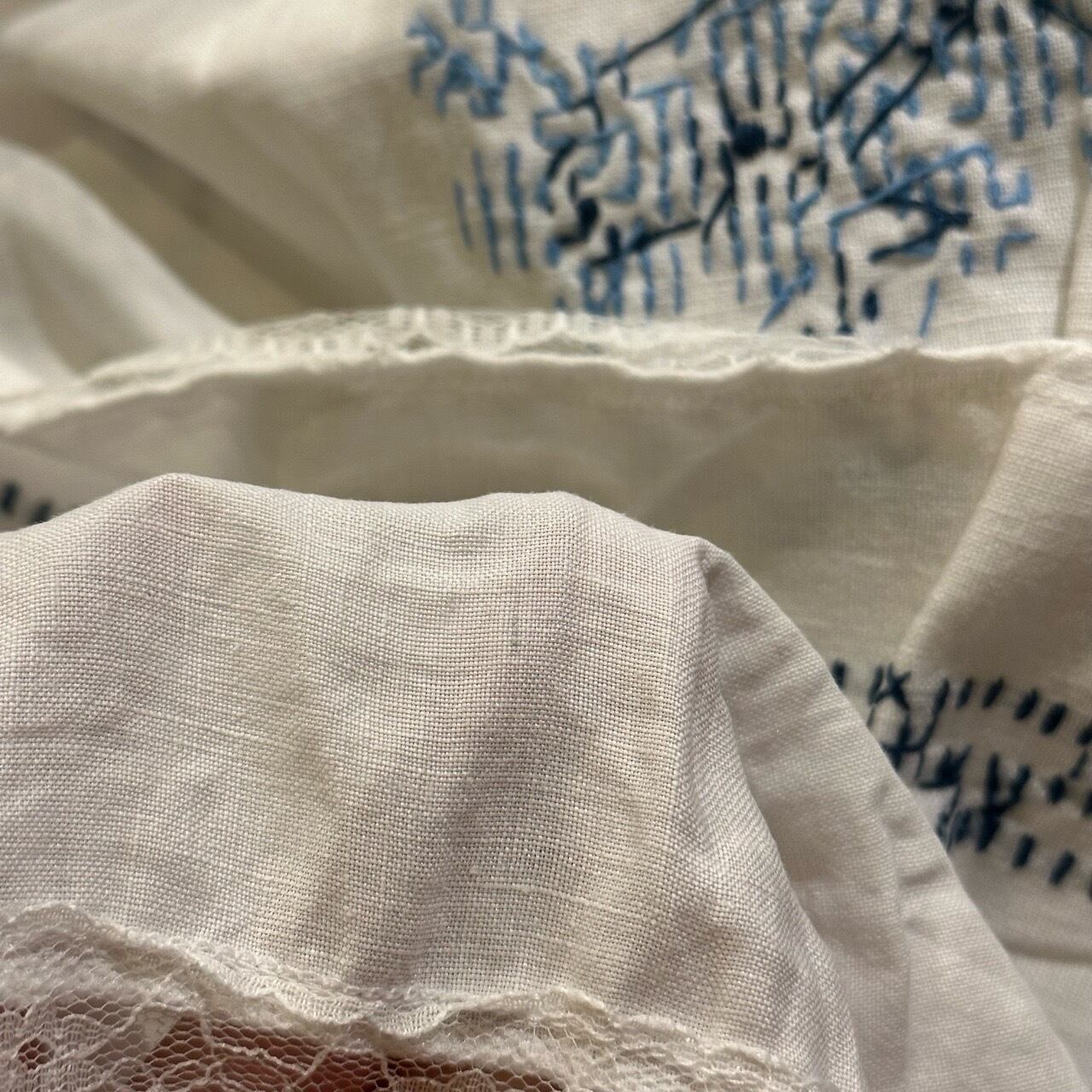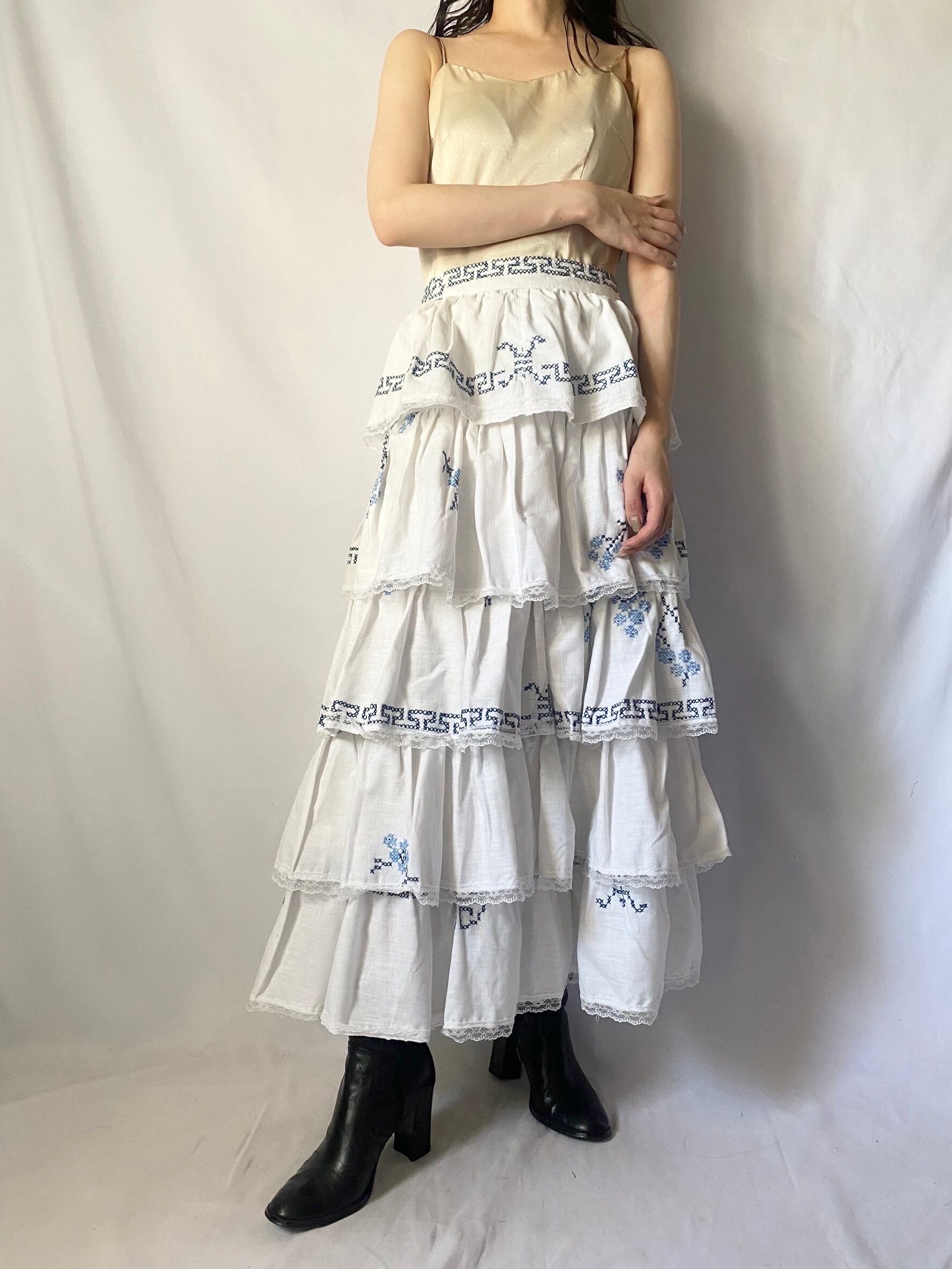 ホワイトブルー刺繍ボリュームスカート