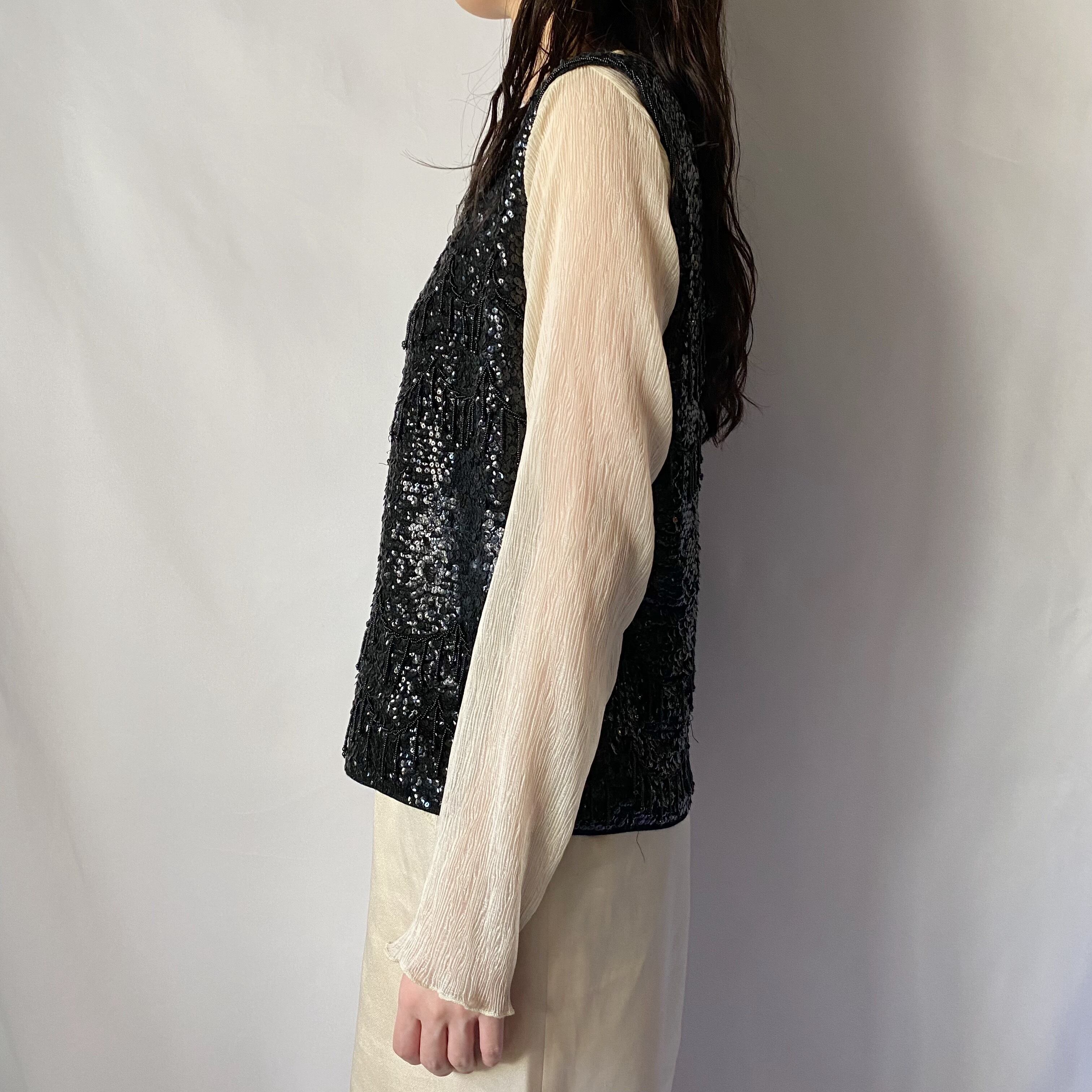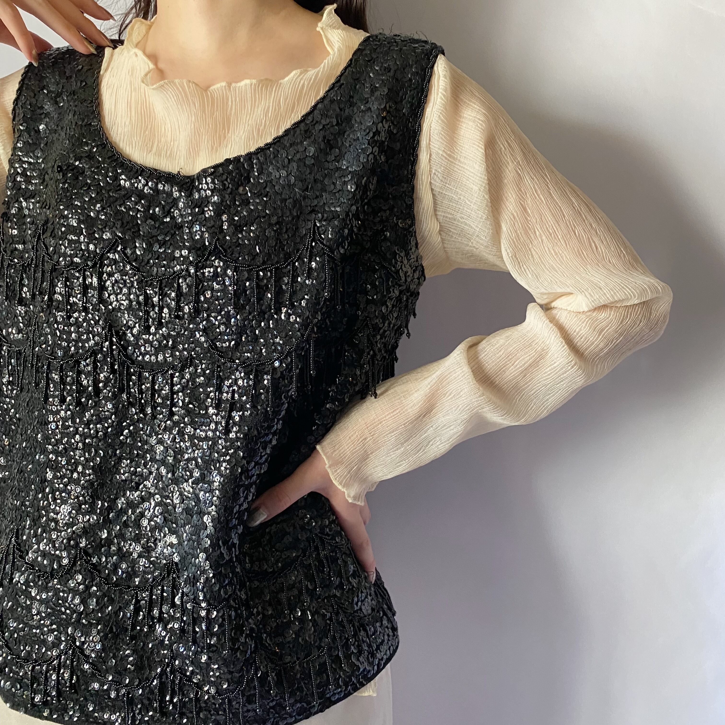 ブラックスパンコールノースリーブトップス
