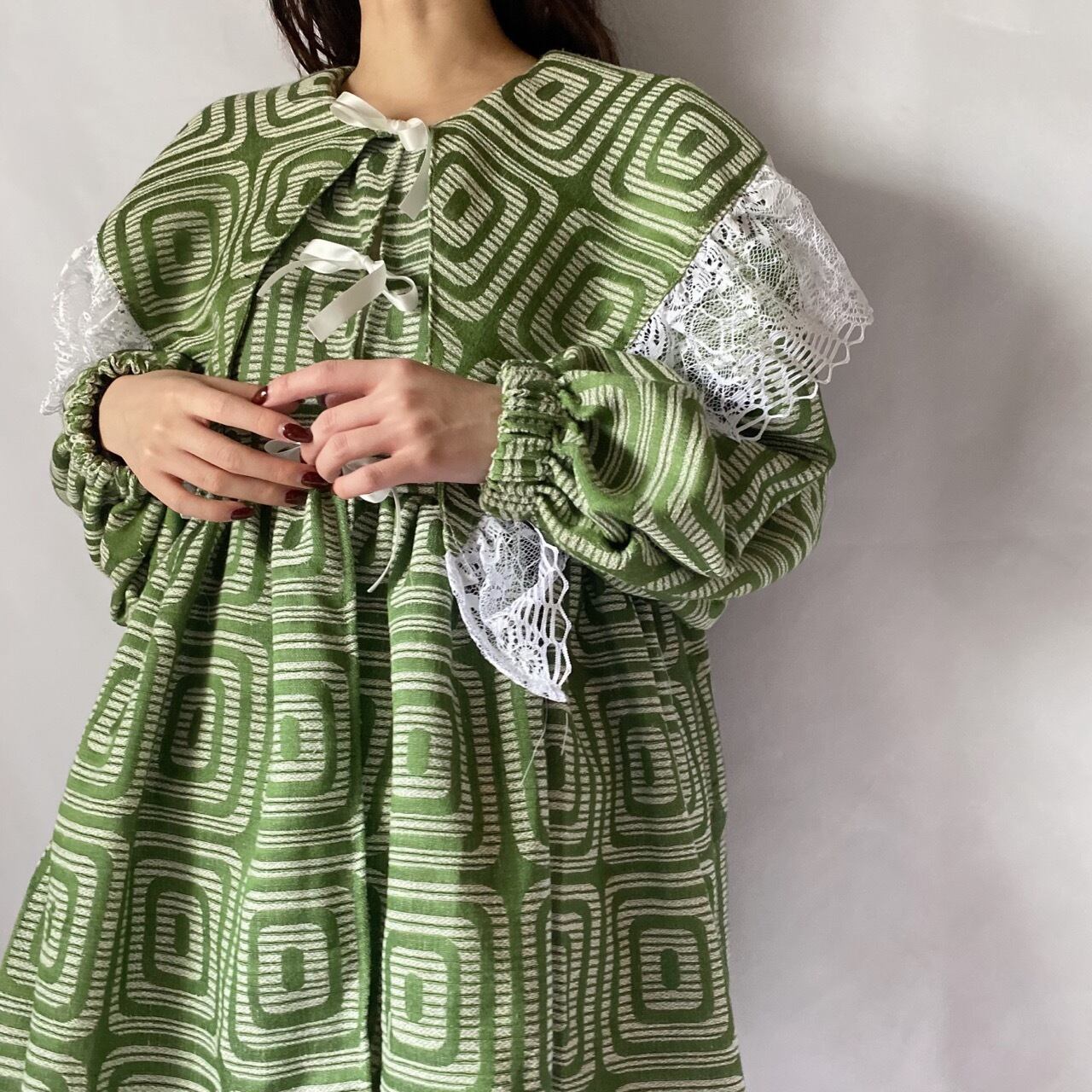 グリーン柄ワンピースジャケット