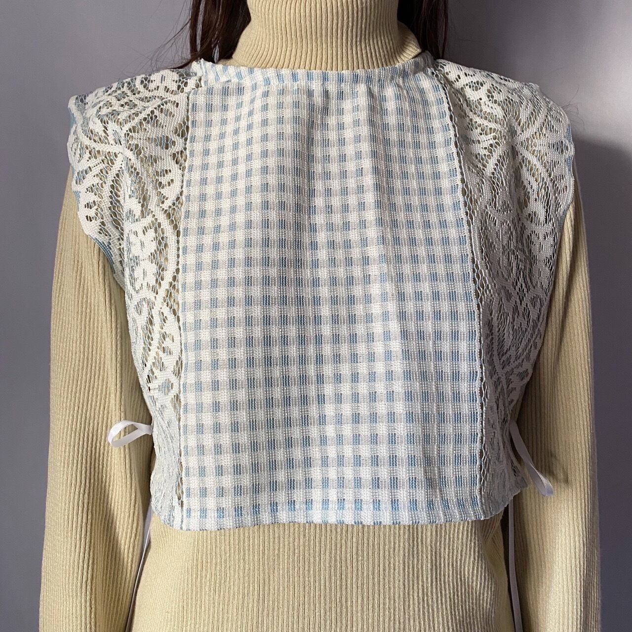 ライトブルーチェックレーストップス