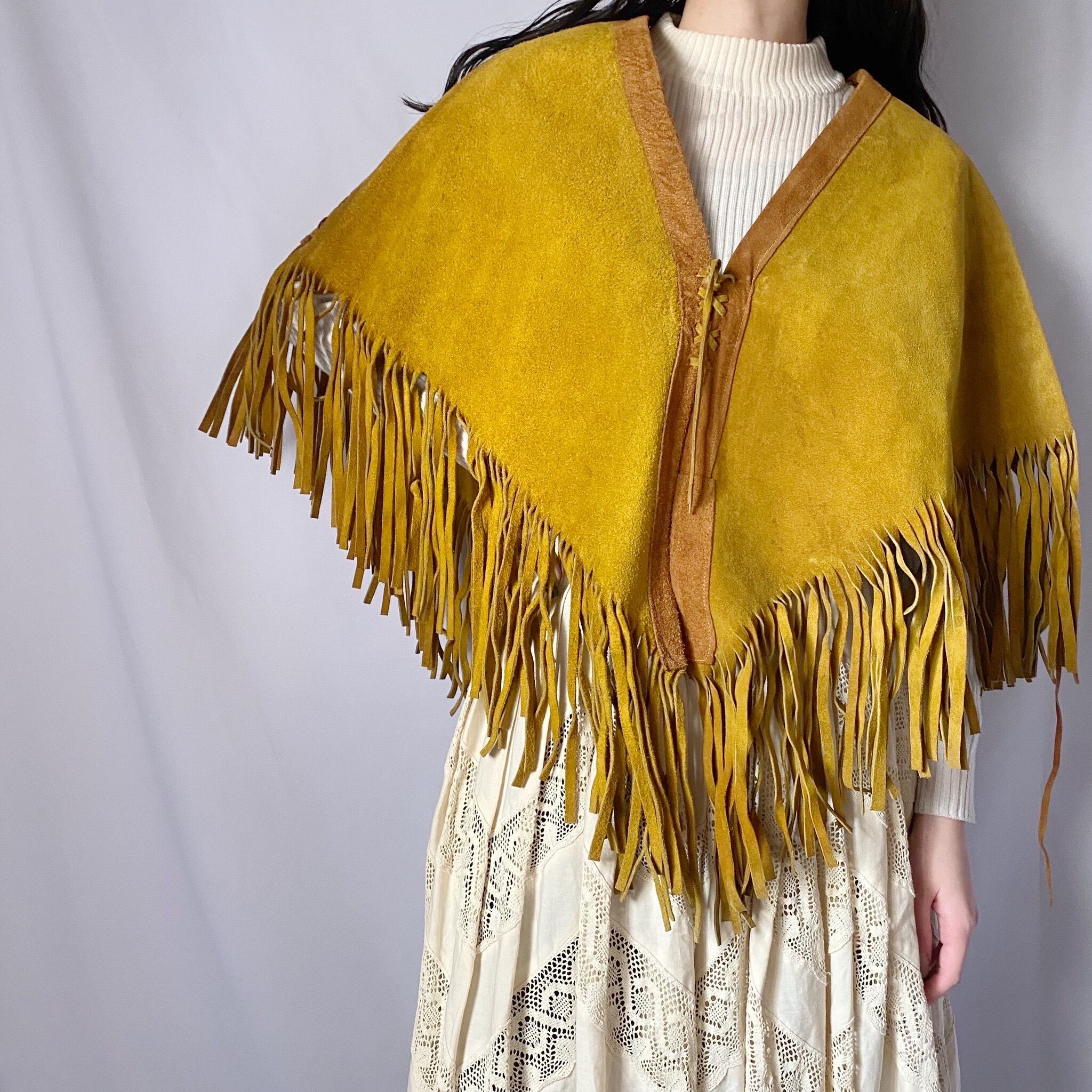 レザーフリンジポンチョ