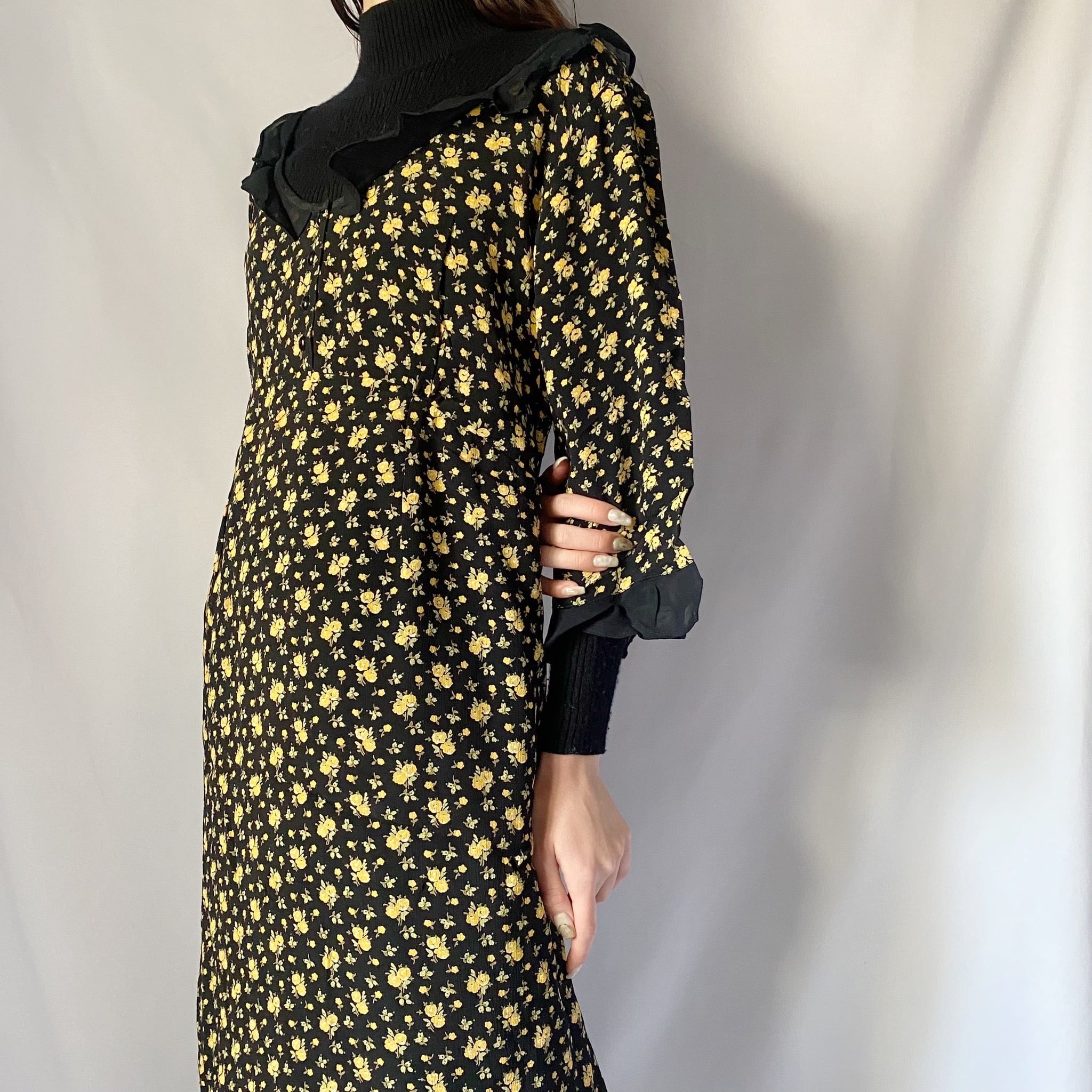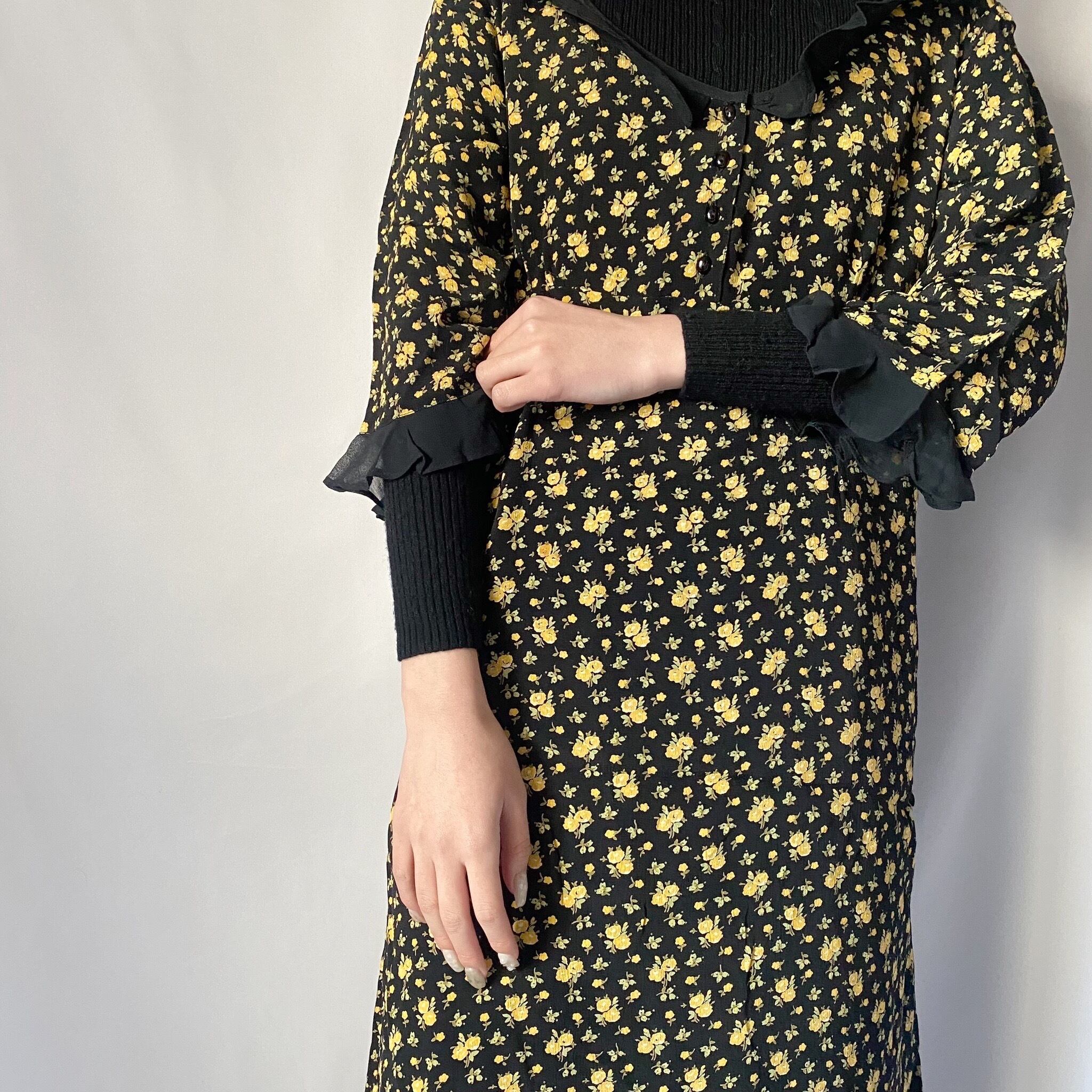 ブラックフラワーレーヨンワンピース